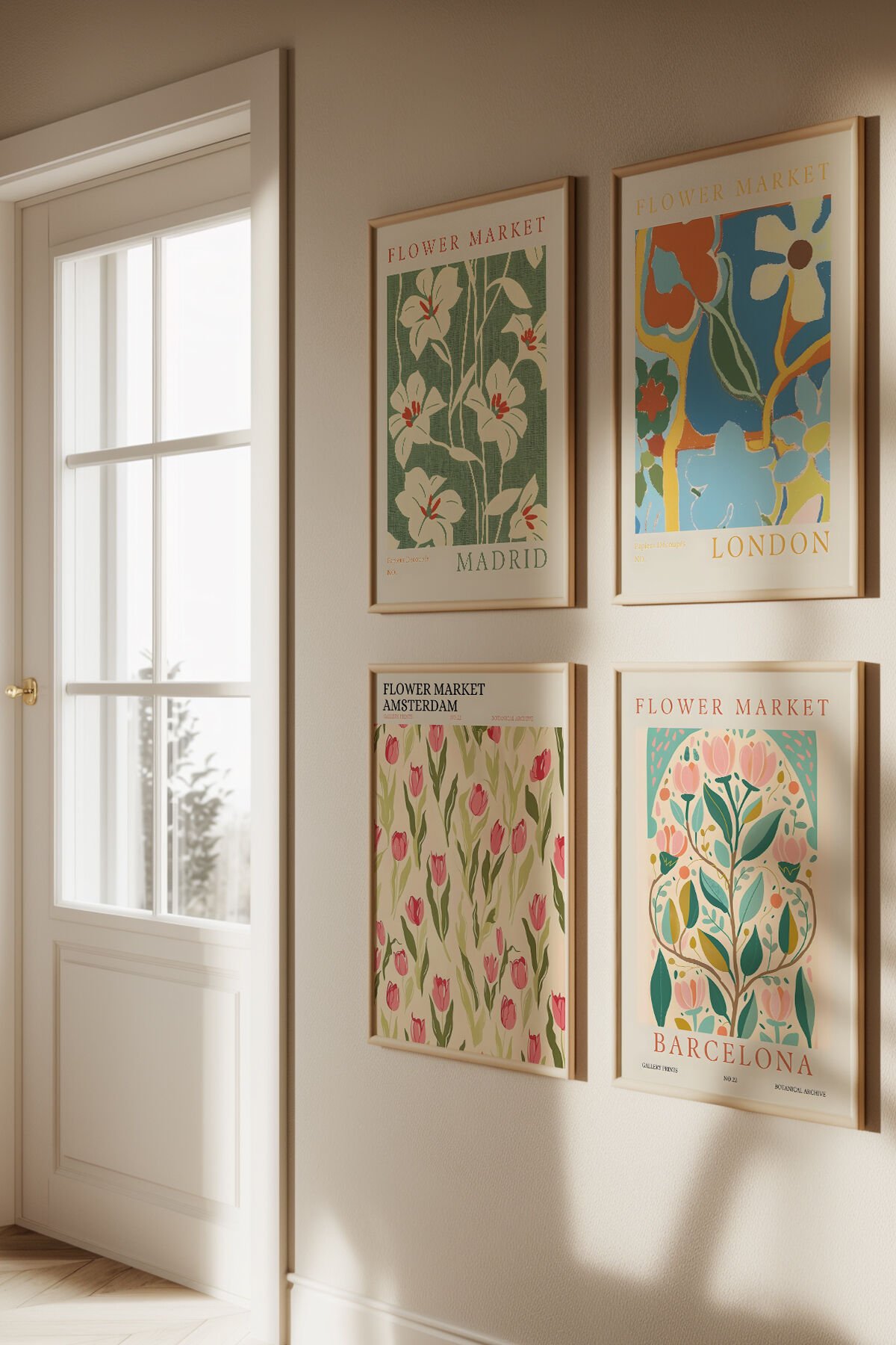 DOĞAL AHŞAP - Sanat ve Doğa Buluşması - Madrid, London, Amsterdam, Barcelona 4'lü Minimalist Tablo Seti