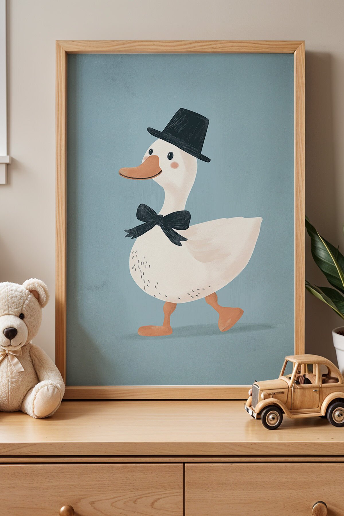 DOĞAL AHŞAP - Şapkalı Ördek Çocuk Odası Ahşap Çerçeveli Duvar Tablosu