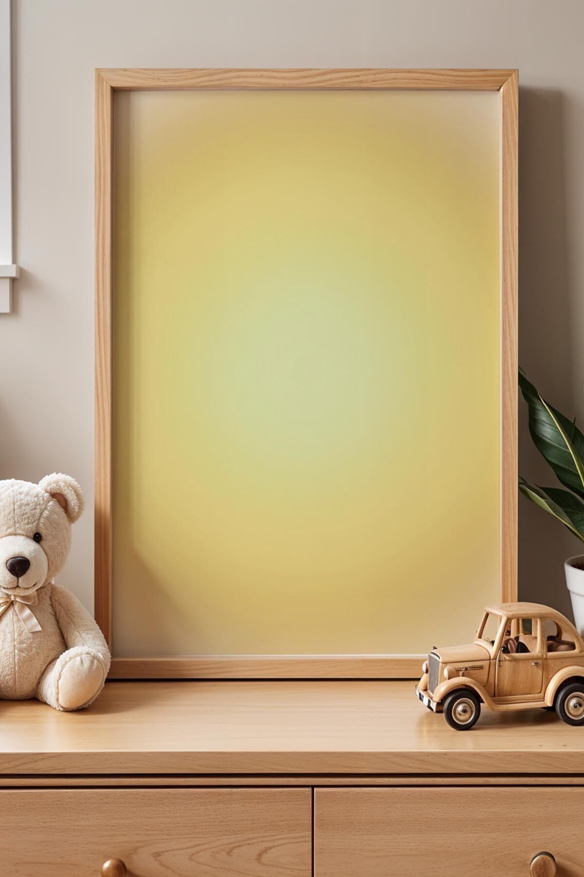 DOĞAL AHŞAP - Sarı Arka Fonlu Çocuk Odası Ahşap Çerçeveli Duvar Tablosu