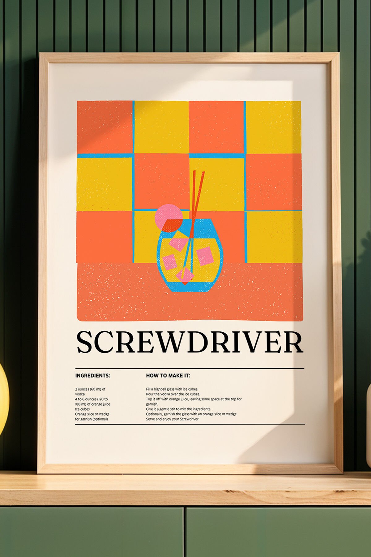 DOĞAL AHŞAP - Screwdriver Kokteyl Tarifi Mutfak Dekoru Ahşap Çerçeveli Duvar Tablosu