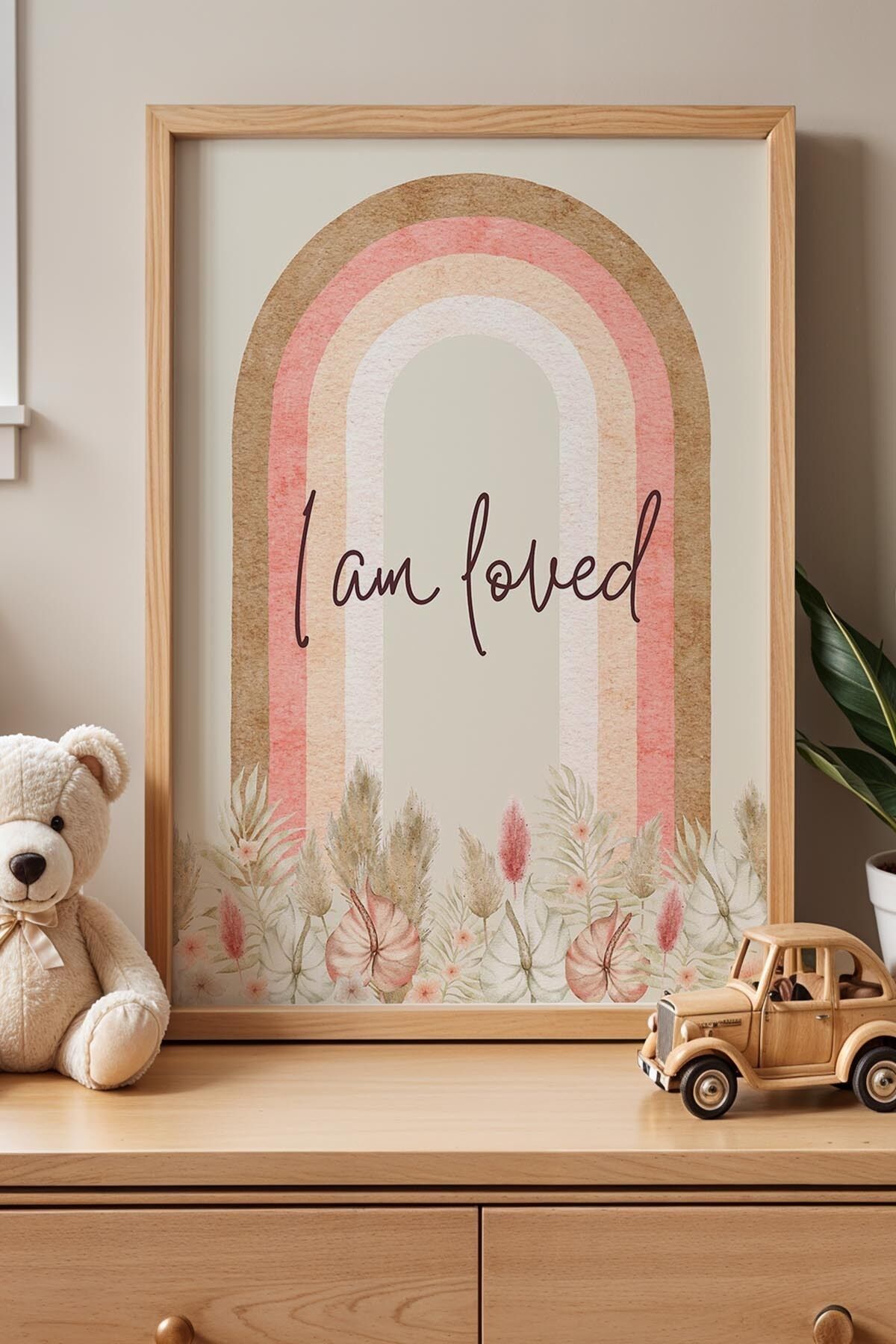DOĞAL AHŞAP - Seviliyorum Yazılı Çocuk Odası Ahşap Çerçeveli Duvar Tablosu