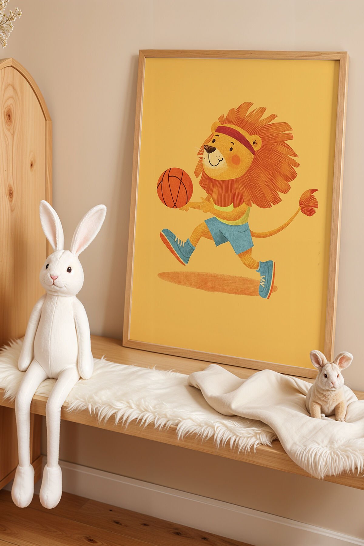 DOĞAL AHŞAP - Sevimli Aslan Çocuk Odası Ve Bebek Odası Ahşap Çerçeveli Duvar Tablosu
