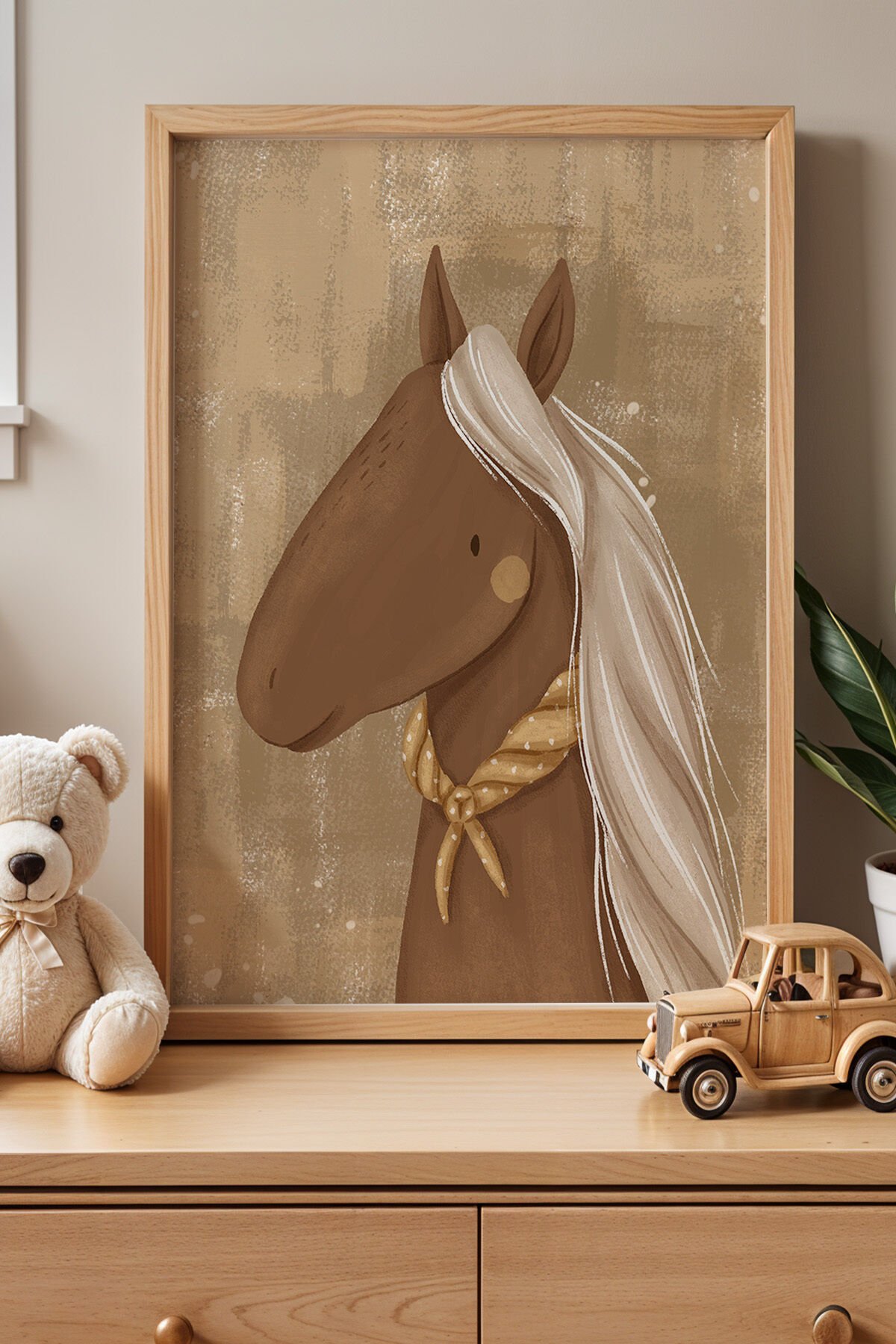 DOĞAL AHŞAP - Sevimli At Çocuk Odası Ahşap Çerçeveli Duvar Tablosu