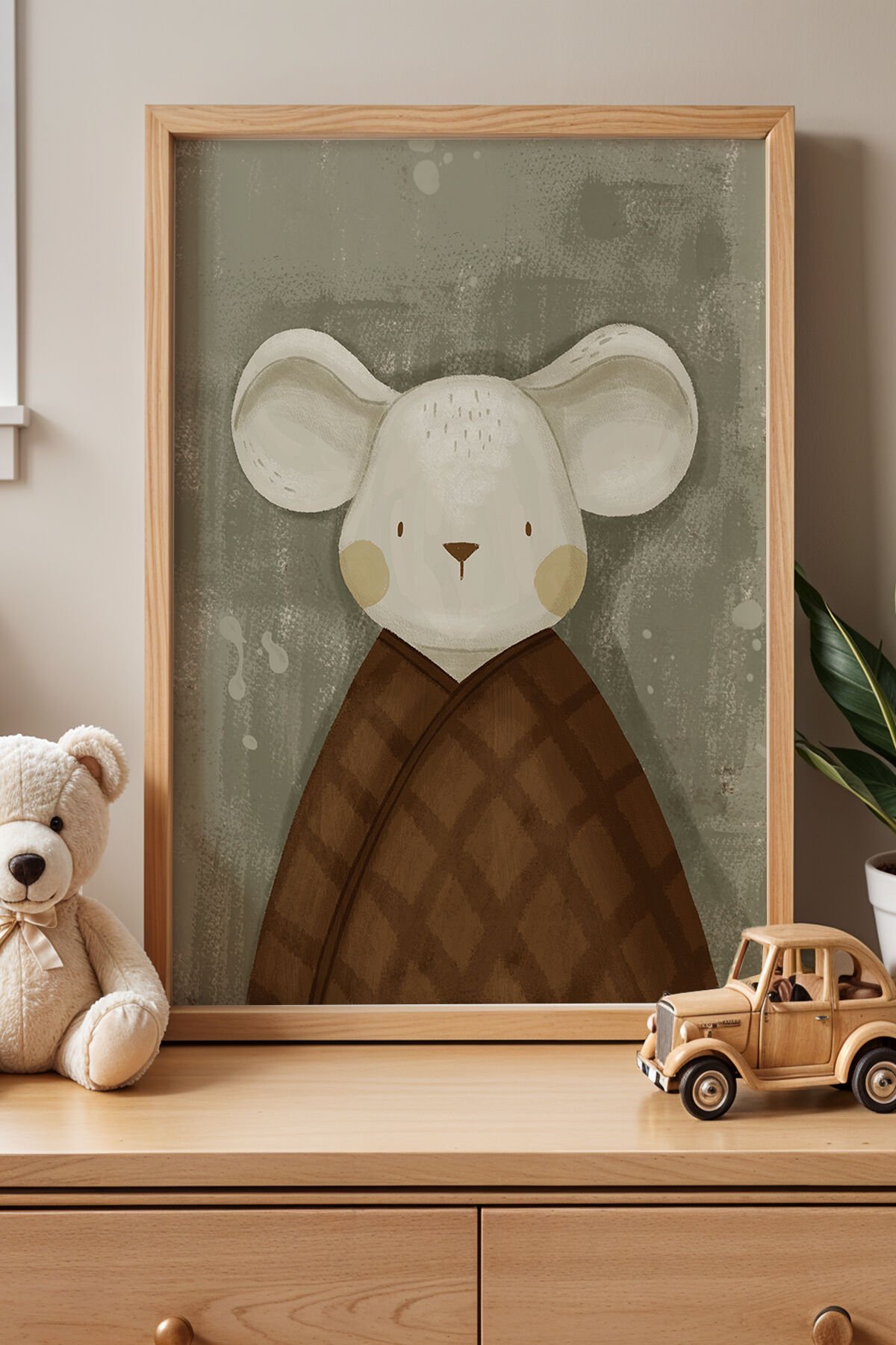 DOĞAL AHŞAP - Sevimli Battaniyeli Farecik Çocuk Odası Ahşap Çerçeveli Duvar Tablosu