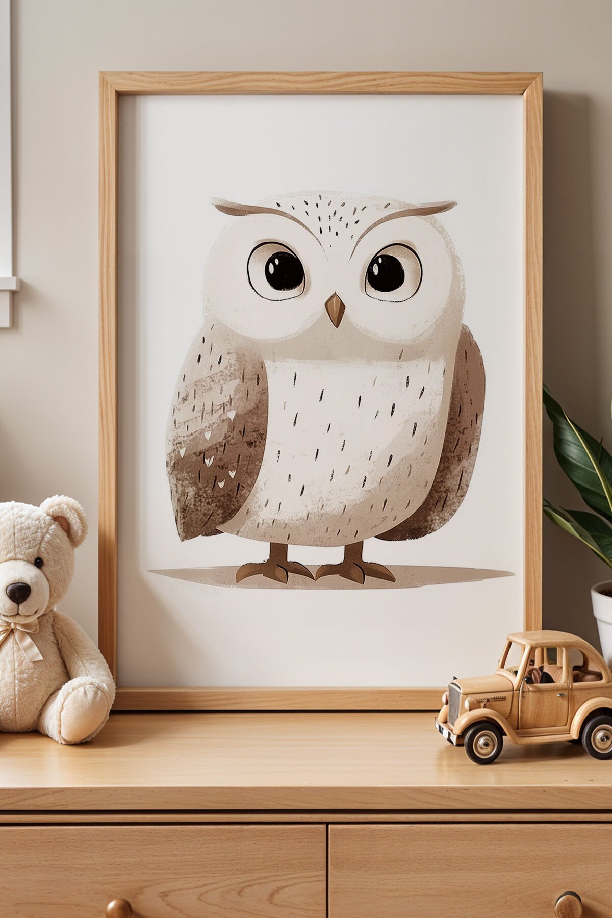 DOĞAL AHŞAP - Sevimli Baykuş Çocuk Odası Ahşap Çerçeveli Duvar Tablosu