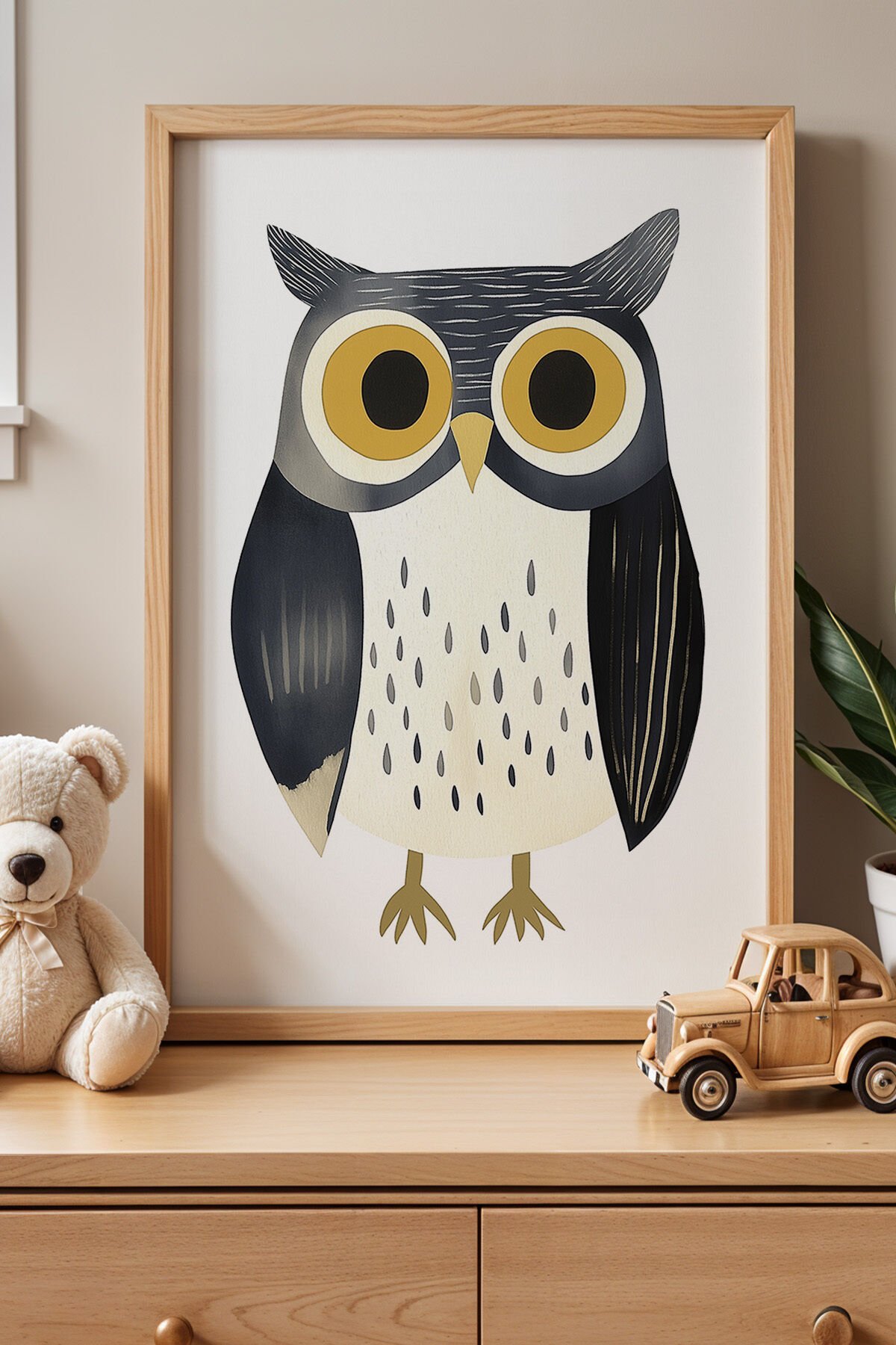 DOĞAL AHŞAP - Sevimli Baykuş Çocuk Odası Ahşap Çerçeveli Duvar Tablosu