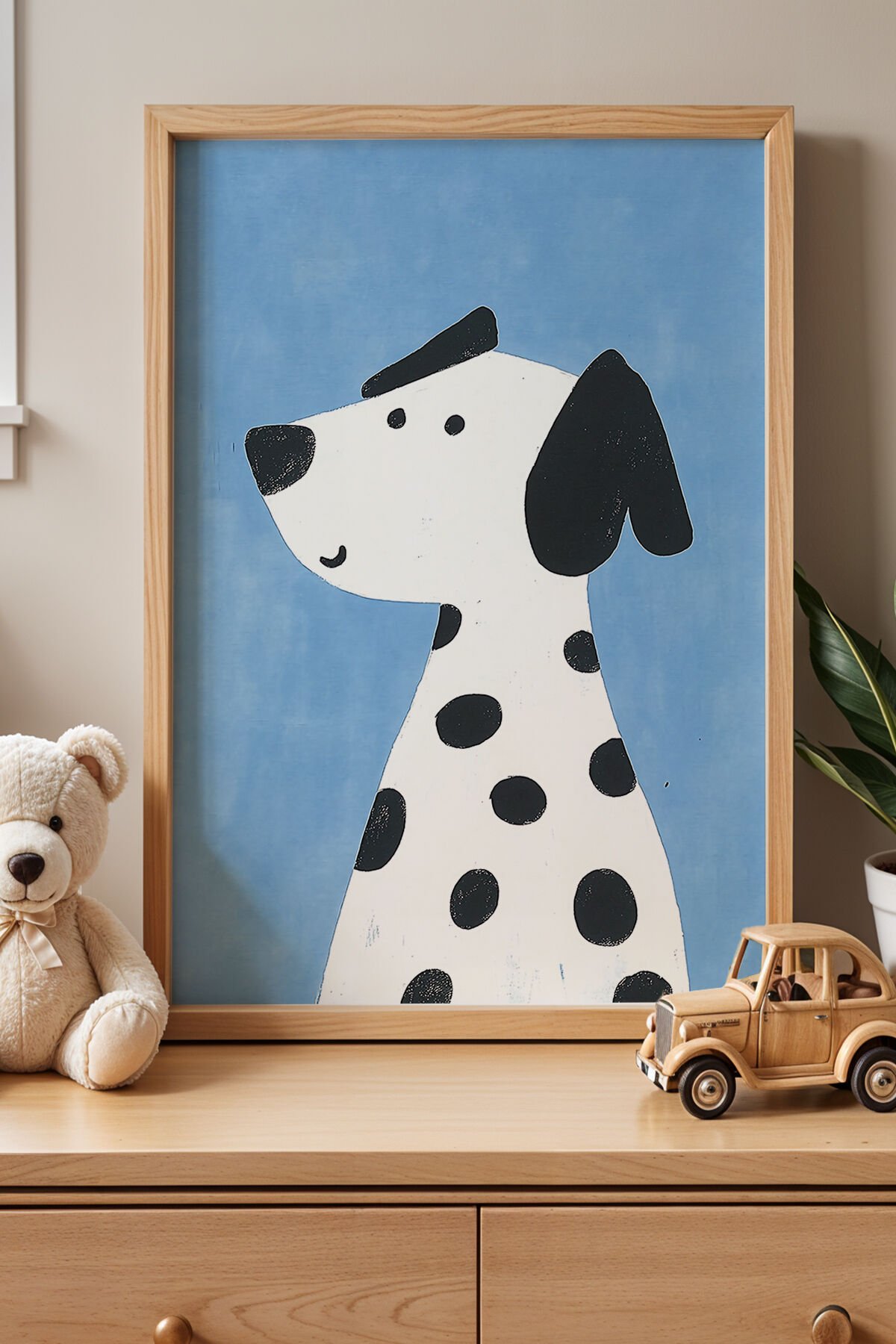 DOĞAL AHŞAP - Sevimli Dalmaçyalı Çocuk Odası Ahşap Çerçeveli Duvar Tablosu