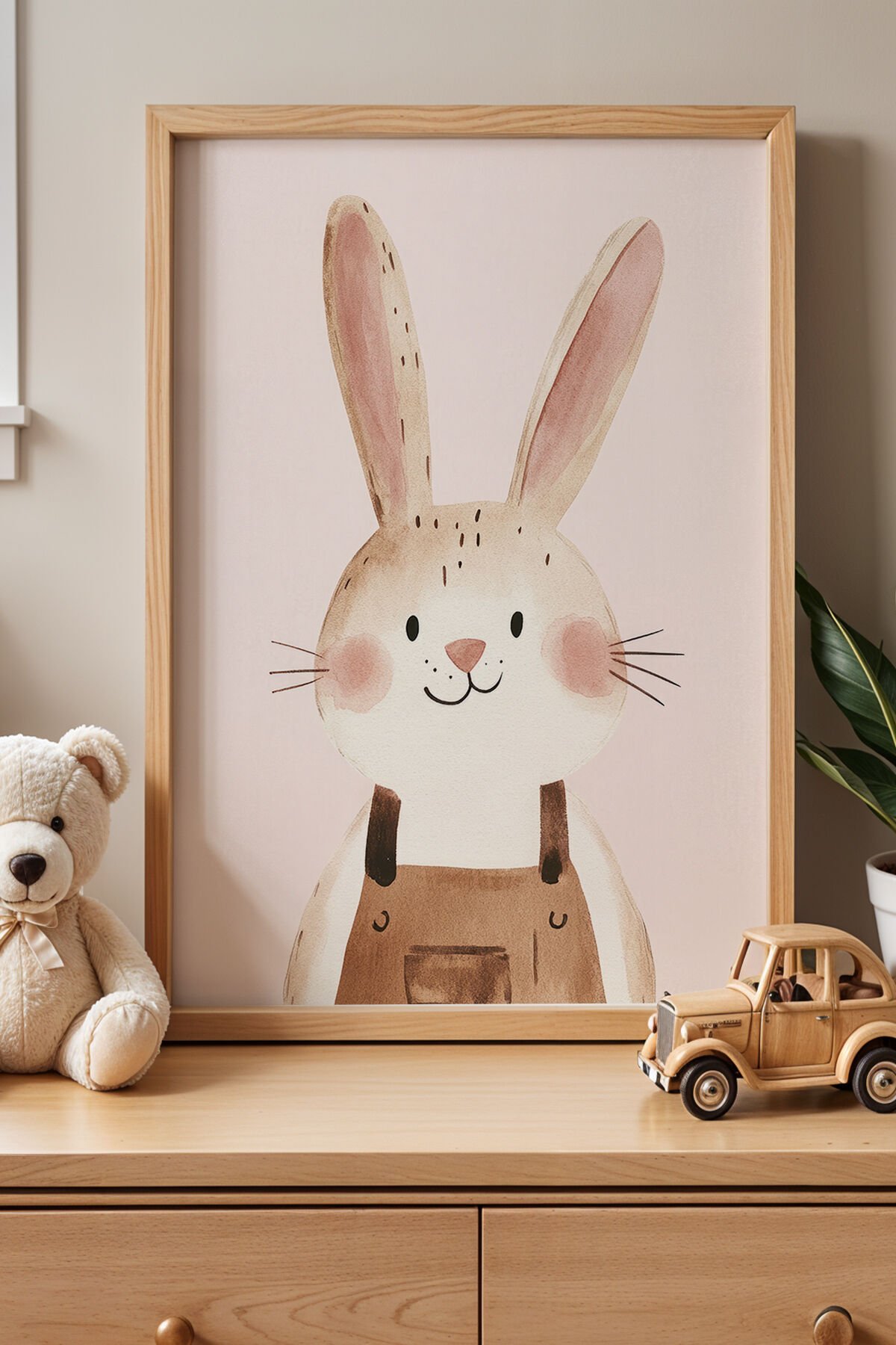 DOĞAL AHŞAP - Sevimli Erkek Tavşan Çocuk Odası Ve Bebek Odası Ahşap Çerçeveli Duvar Tablosu