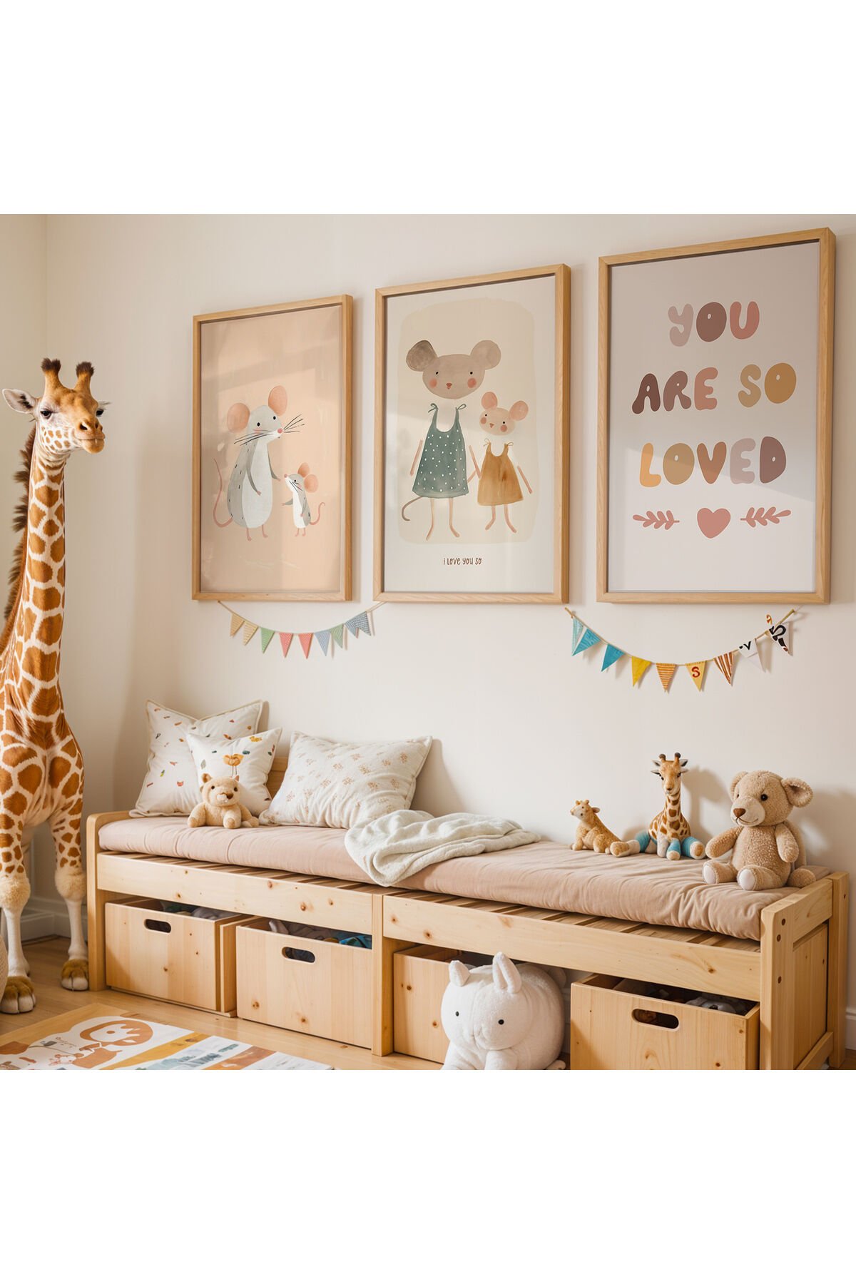 DOĞAL AHŞAP - Sevimli Farecikler Doğal Ahşap Çerçeveli Çocuk Odası ve Bebek Odası Tablosu