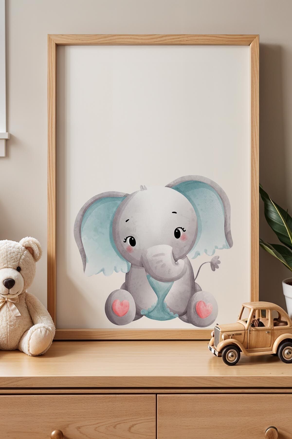 DOĞAL AHŞAP - Sevimli Fil Çocuk Odası Ahşap Çerçeveli Duvar Tablosu