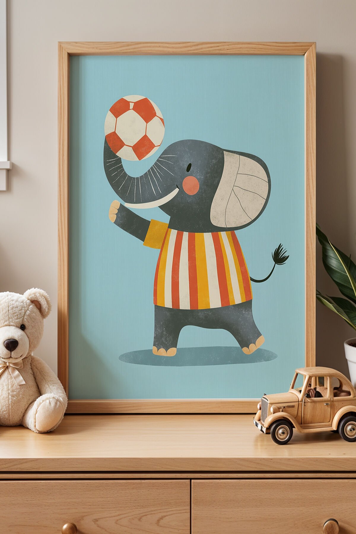 DOĞAL AHŞAP - Sevimli Fil Çocuk Odası Ve Bebek Odası Ahşap Çerçeveli Duvar Tablosu