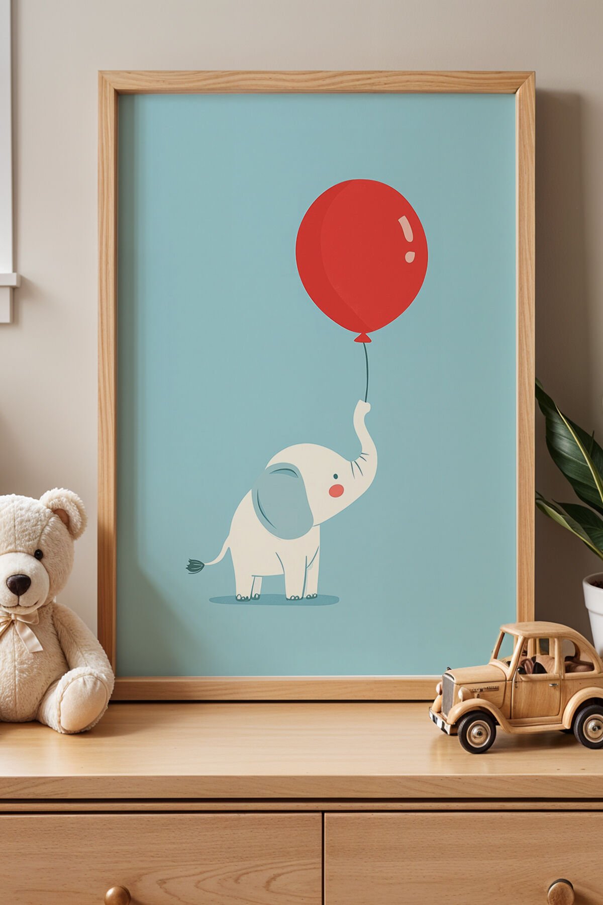 DOĞAL AHŞAP - Sevimli Fil Çocuk Odası Ve Bebek Odası Ahşap Çerçeveli Duvar Tablosu NRY-1057t