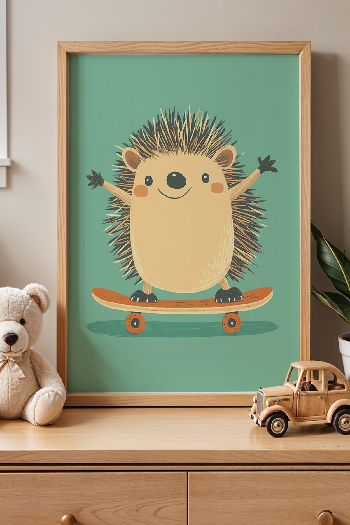 DOĞAL AHŞAP - Sevimli Kirpi Çocuk Odası Ve Bebek Odası Ahşap Çerçeveli Duvar Tablosu