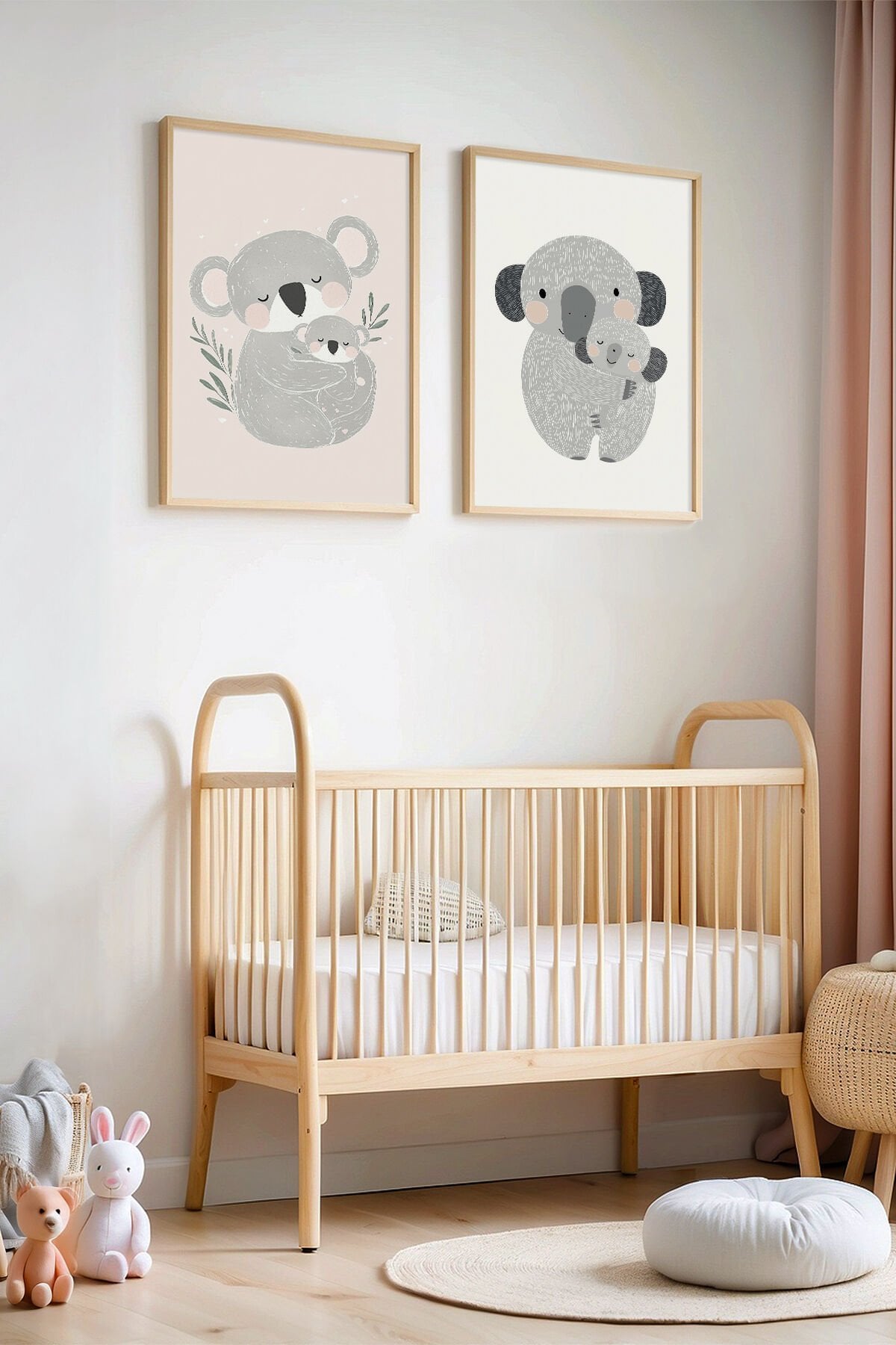 DOĞAL AHŞAP - Sevimli Koala Aile - Doğal Ahşap Çerçeveli Çocuk Odası ve Bebek Odası Tablosu