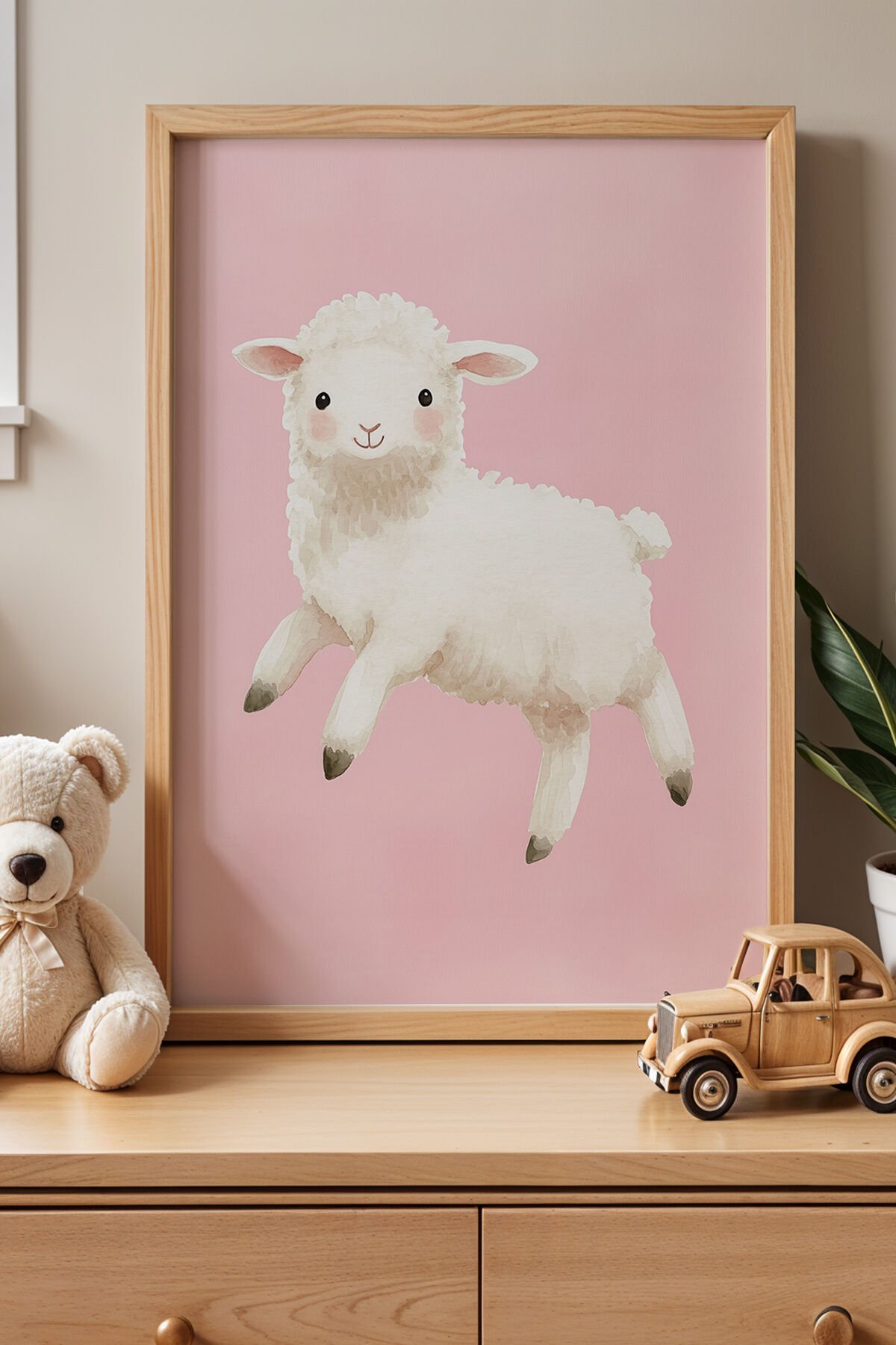 DOĞAL AHŞAP - Sevimli Kuzu Çocuk Odası Ve Bebek Odası Ahşap Çerçeveli Duvar Tablosu