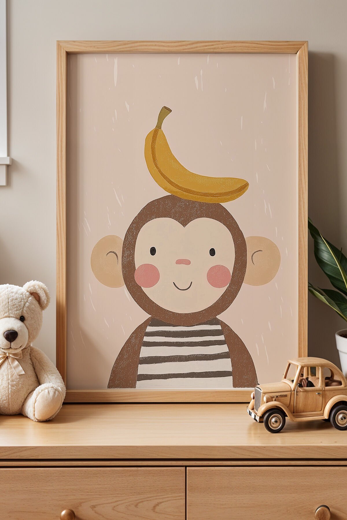 DOĞAL AHŞAP - Sevimli Maymun - Doğal Ahşap Çerçeveli Çocuk ve Bebek Odası Tablosu