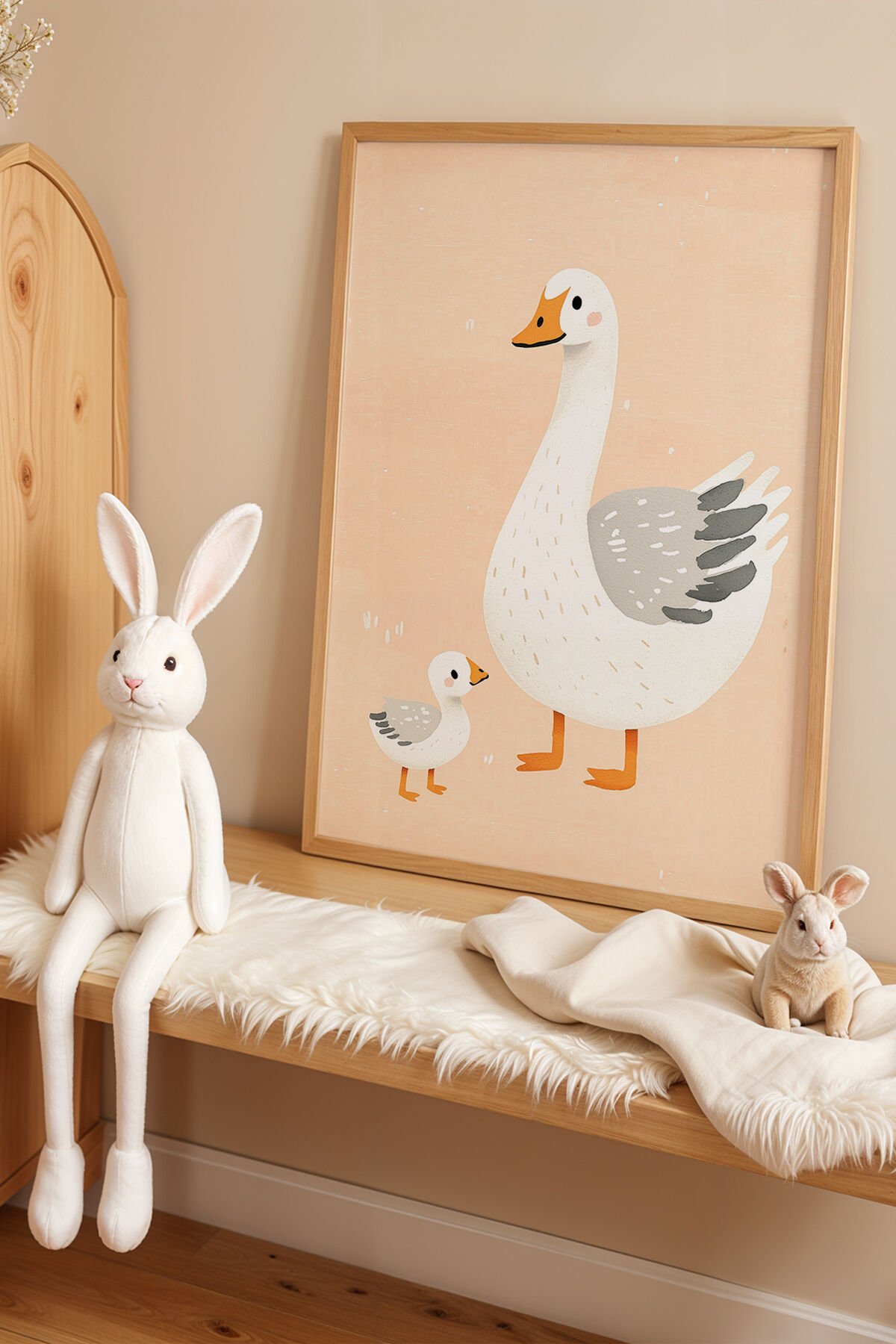 DOĞAL AHŞAP - Sevimli Ördekler Doğal Ahşap Çerçeveli Çocuk ve Bebek Odası Tablosu