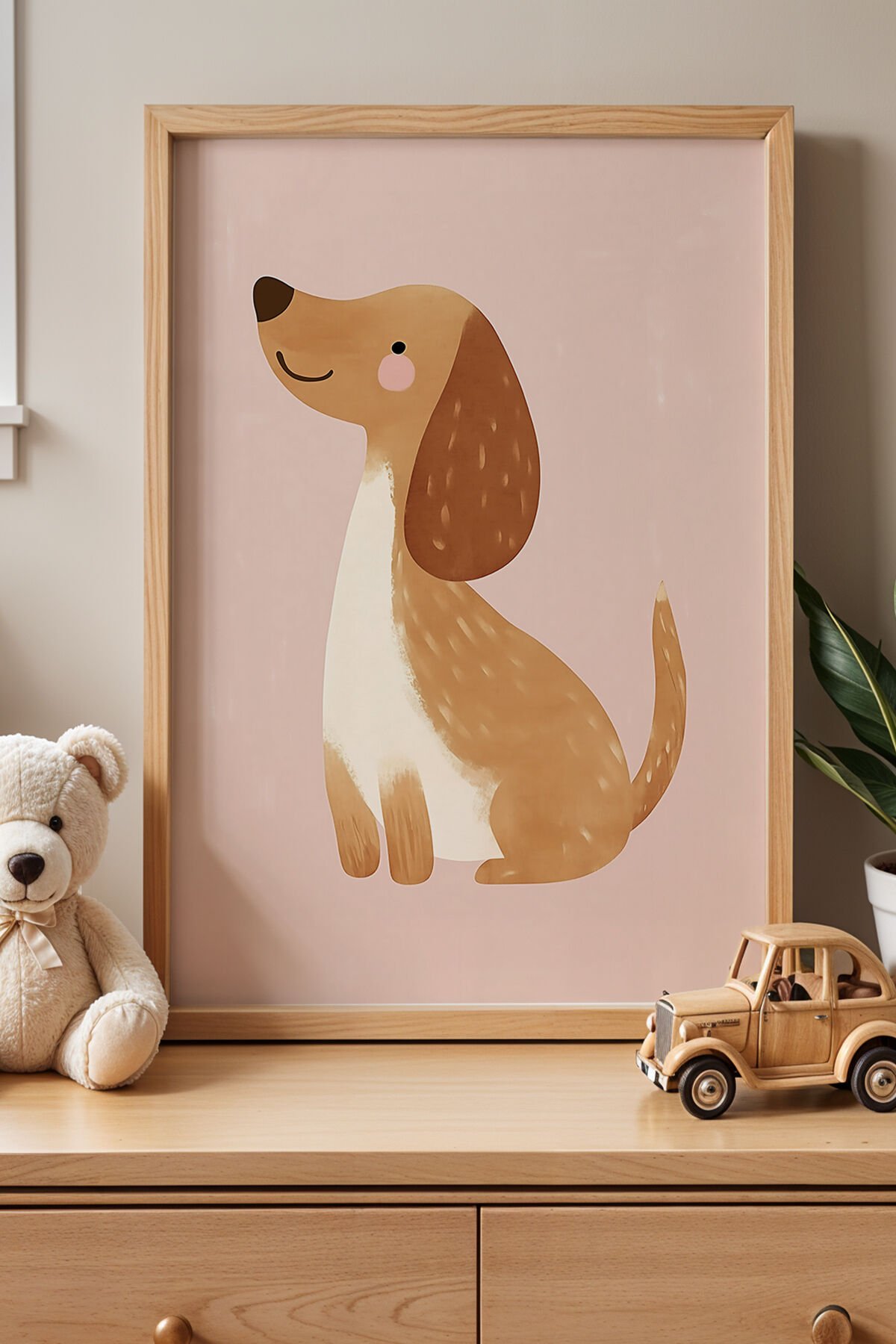DOĞAL AHŞAP - Sevimli Oturan Köpek Çocuk Odası Ahşap Çerçeveli Duvar Tablosu