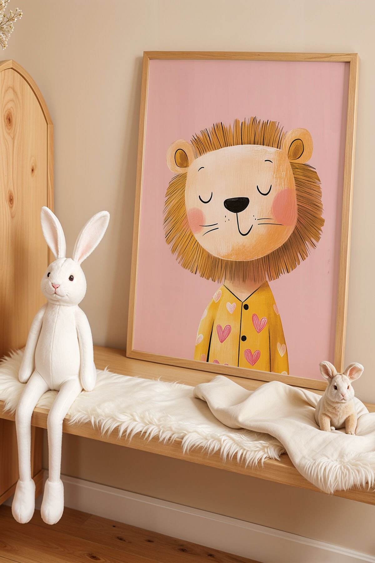 DOĞAL AHŞAP - Sevimli Pijamalı Aslan Çocuk Odası Ve Bebek Odası Ahşap Çerçeveli Duvar Tablosu