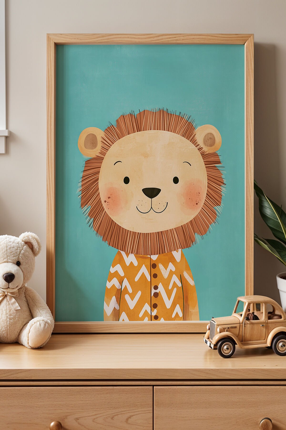 DOĞAL AHŞAP - Sevimli Pijamalı Aslan Çocuk Odası Ve Bebek Odası Ahşap Çerçeveli Duvar Tablosu