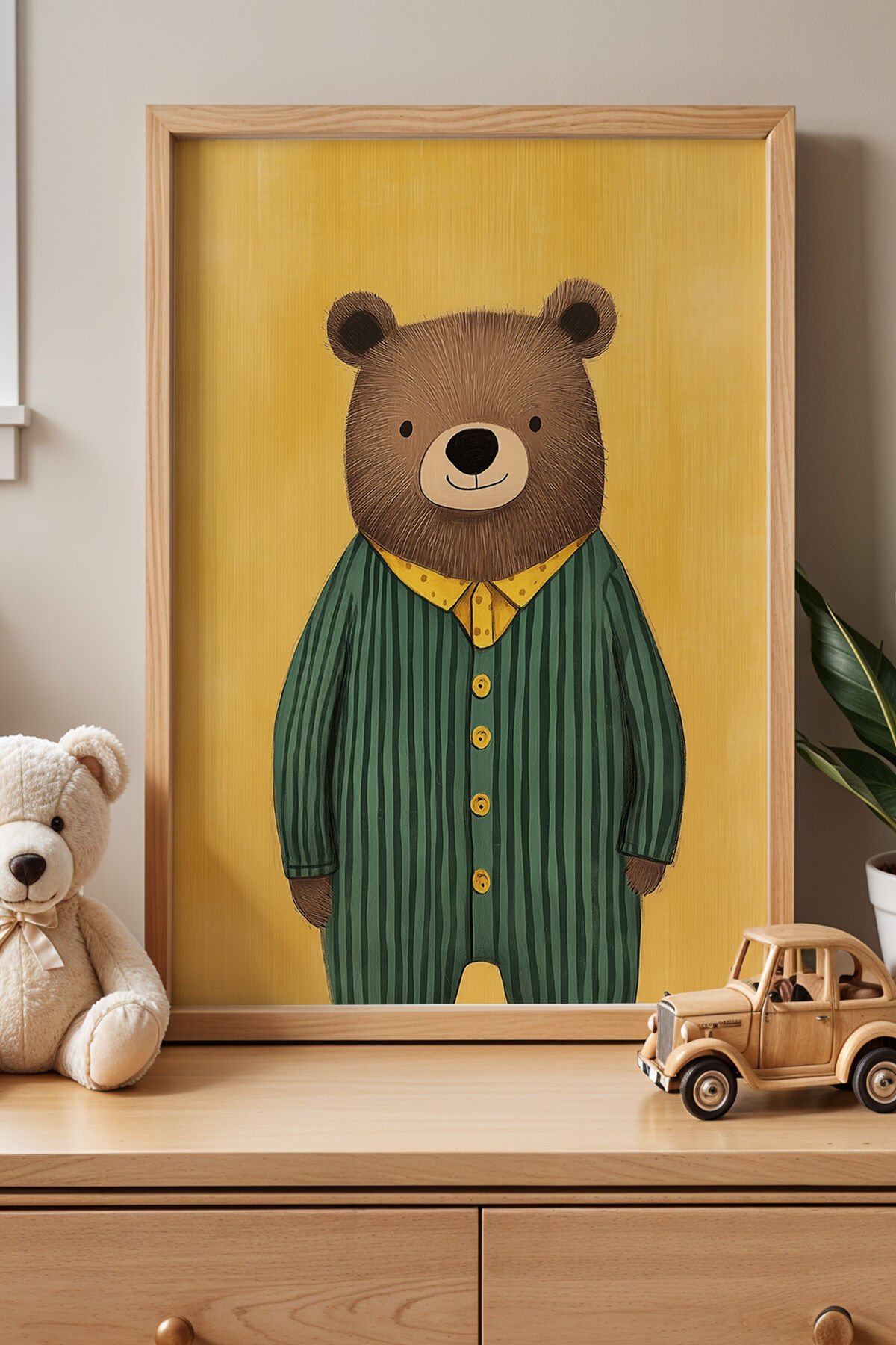 DOĞAL AHŞAP - Sevimli Pijamalı Ayı Çocuk Odası Ve Bebek Odası Ahşap Çerçeveli Duvar Tablosu