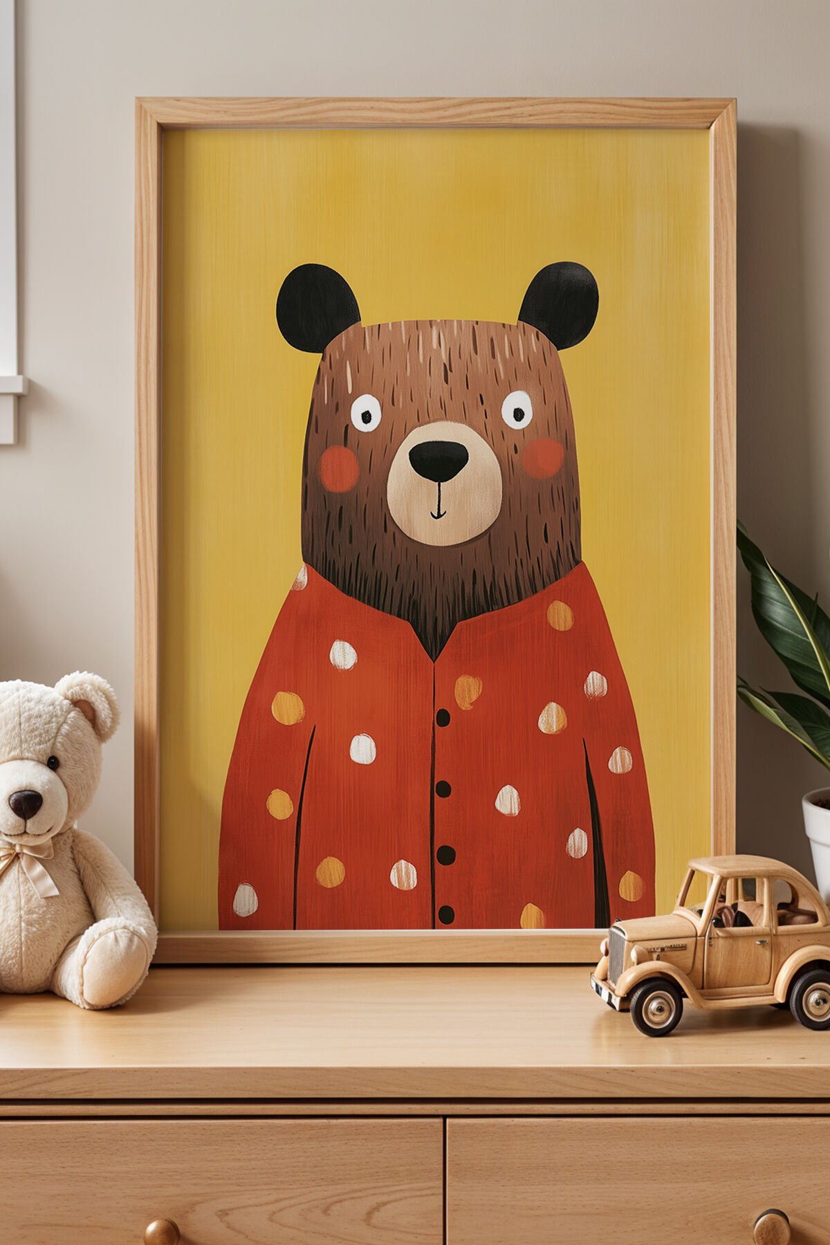 DOĞAL AHŞAP - Sevimli Pijamalı Ayı Çocuk Odası Ve Bebek Odası Ahşap Çerçeveli Duvar Tablosu NRY-1031t