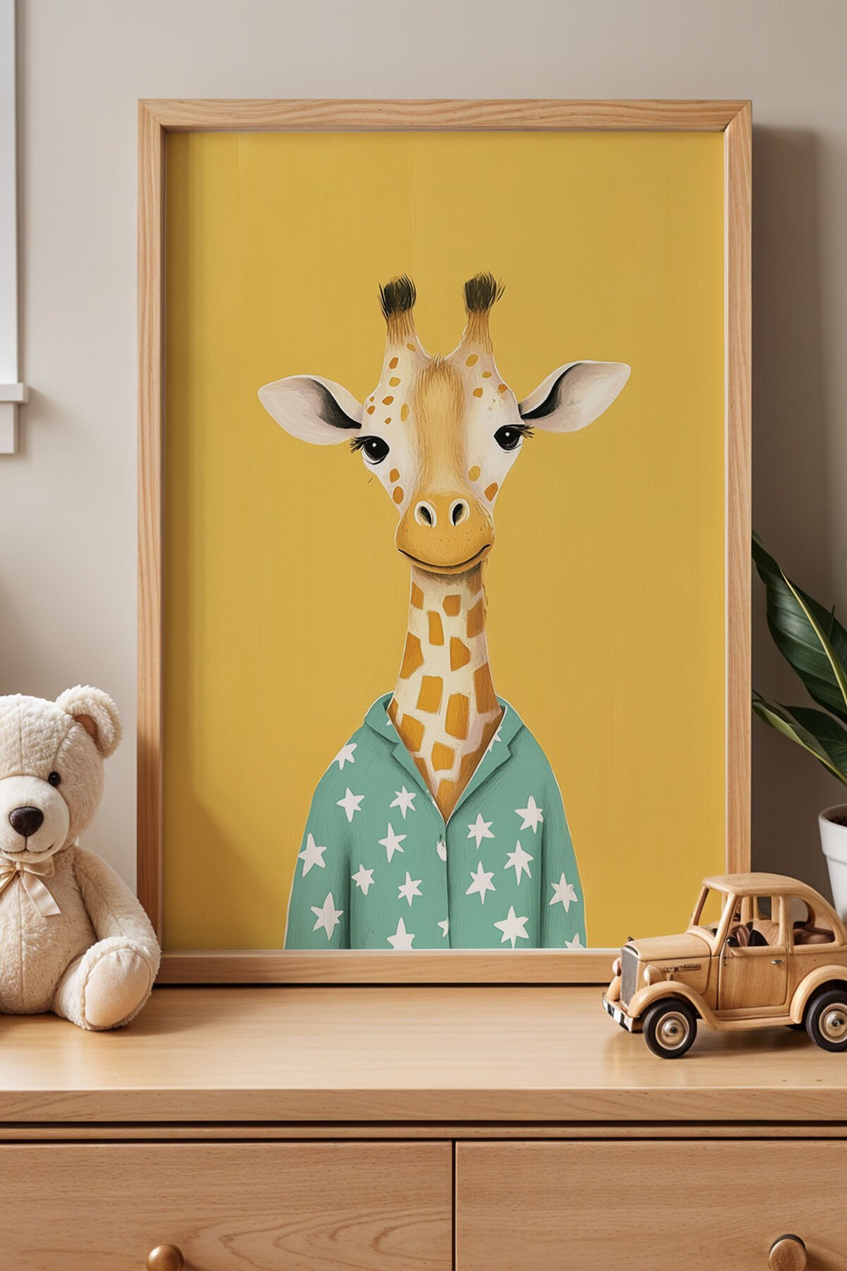 DOĞAL AHŞAP - Sevimli Pijamalı Zürafa Çocuk Odası Ve Bebek Odası Ahşap Çerçeveli Duvar Tablosu