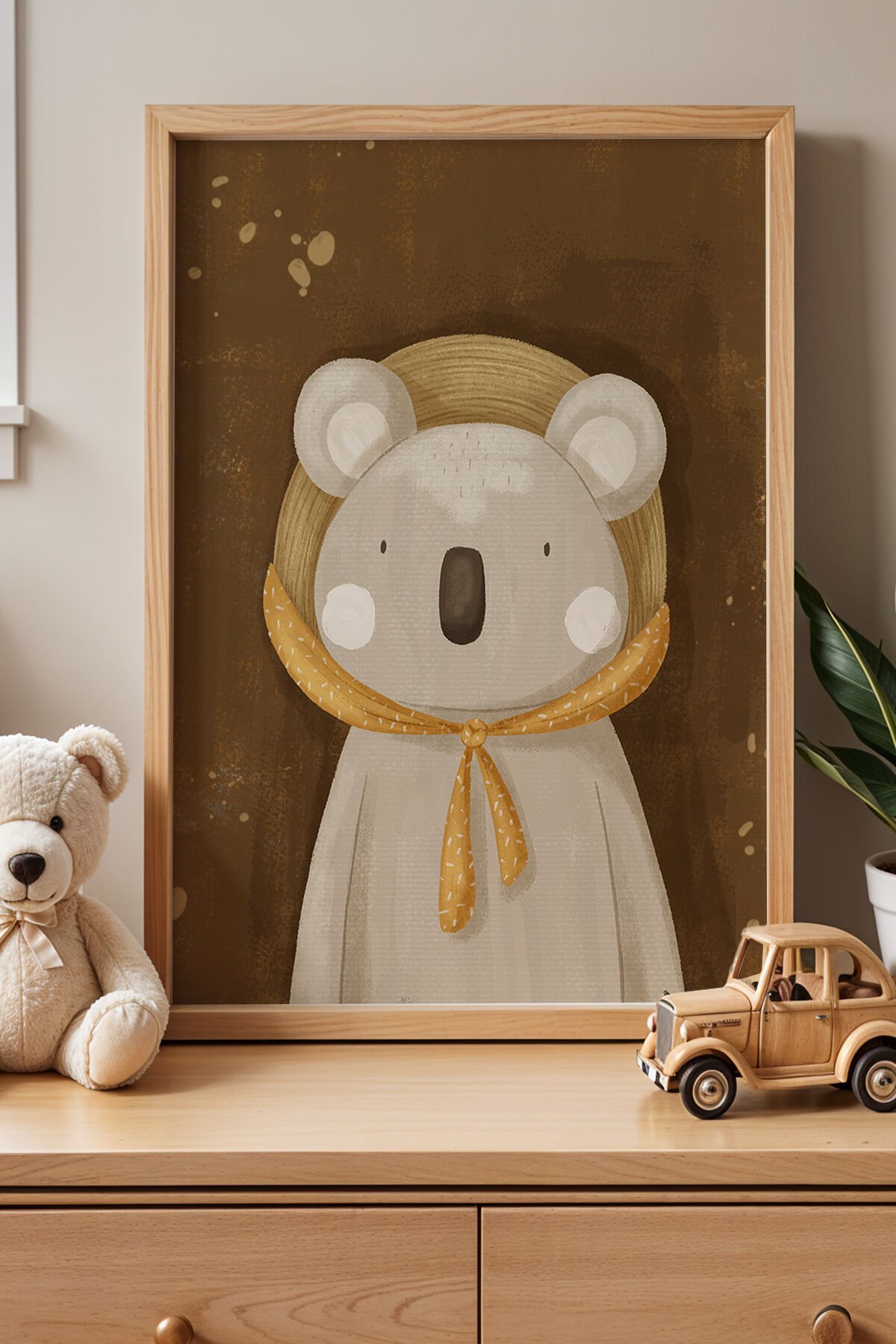 DOĞAL AHŞAP - Sevimli Şapkalı Koala Çocuk Odası Ahşap Çerçeveli Duvar Tablosu