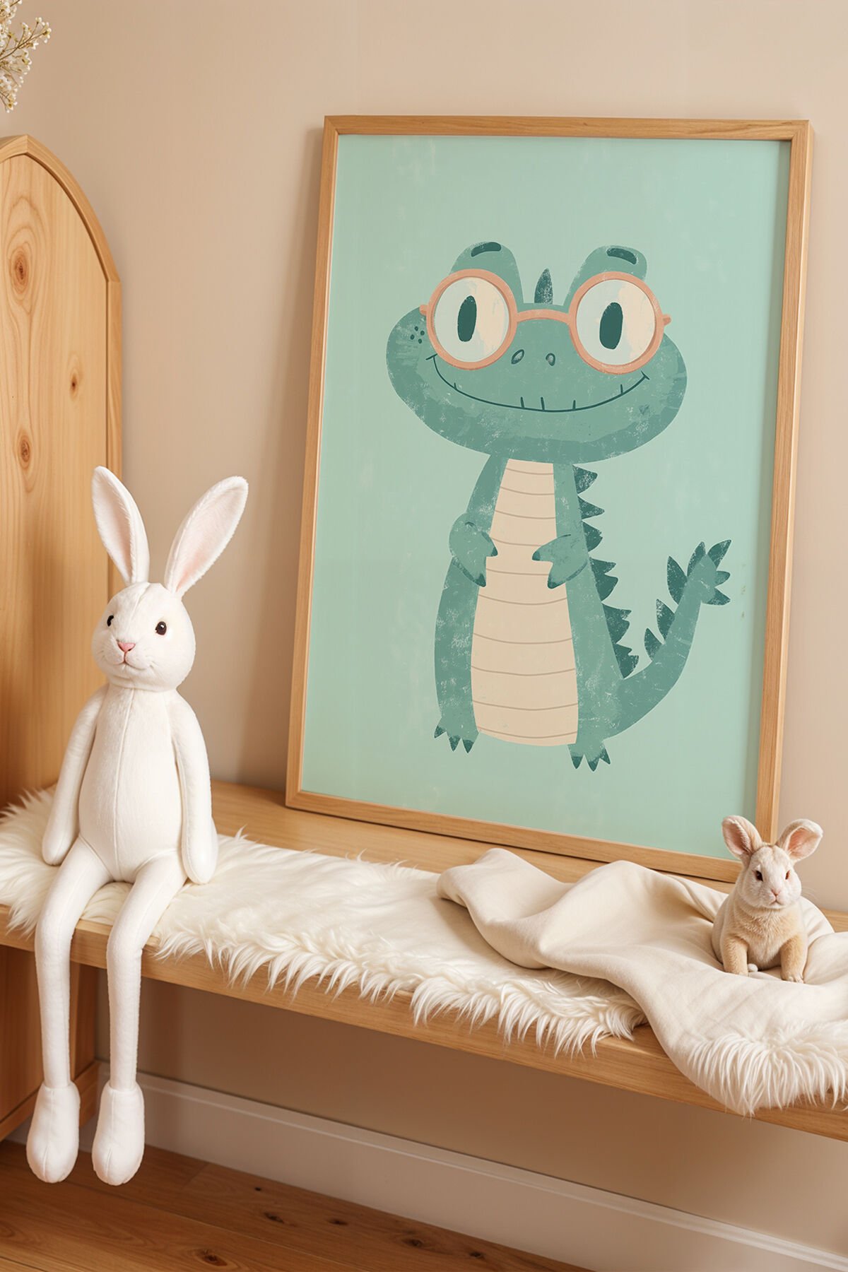 DOĞAL AHŞAP - Sevimli Timsah Çocuk Ve Bebek Odası Ahşap Çerçeveli Duvar Tablosu