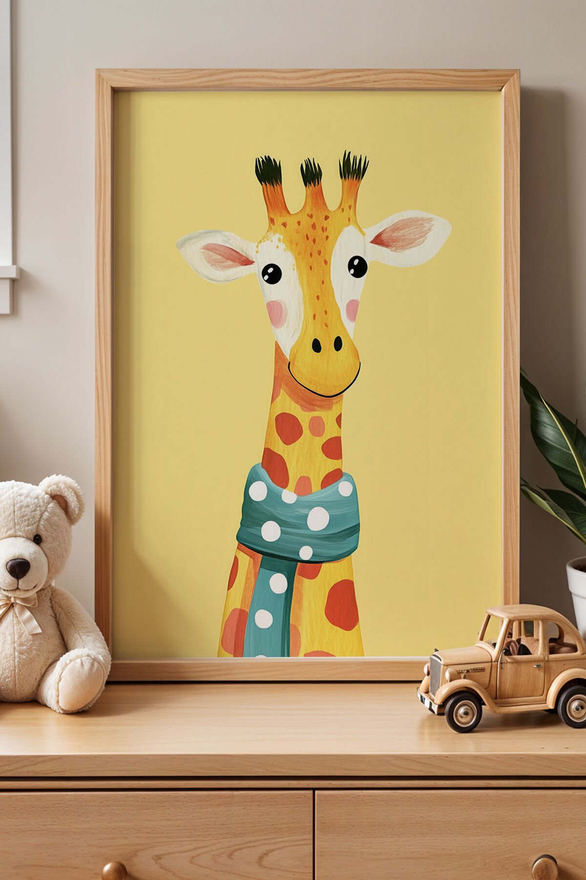 DOĞAL AHŞAP - Sevimli Zürafa Çocuk Odası Ve Bebek Odası Ahşap Çerçeveli Duvar Tablosu NRY-1065t