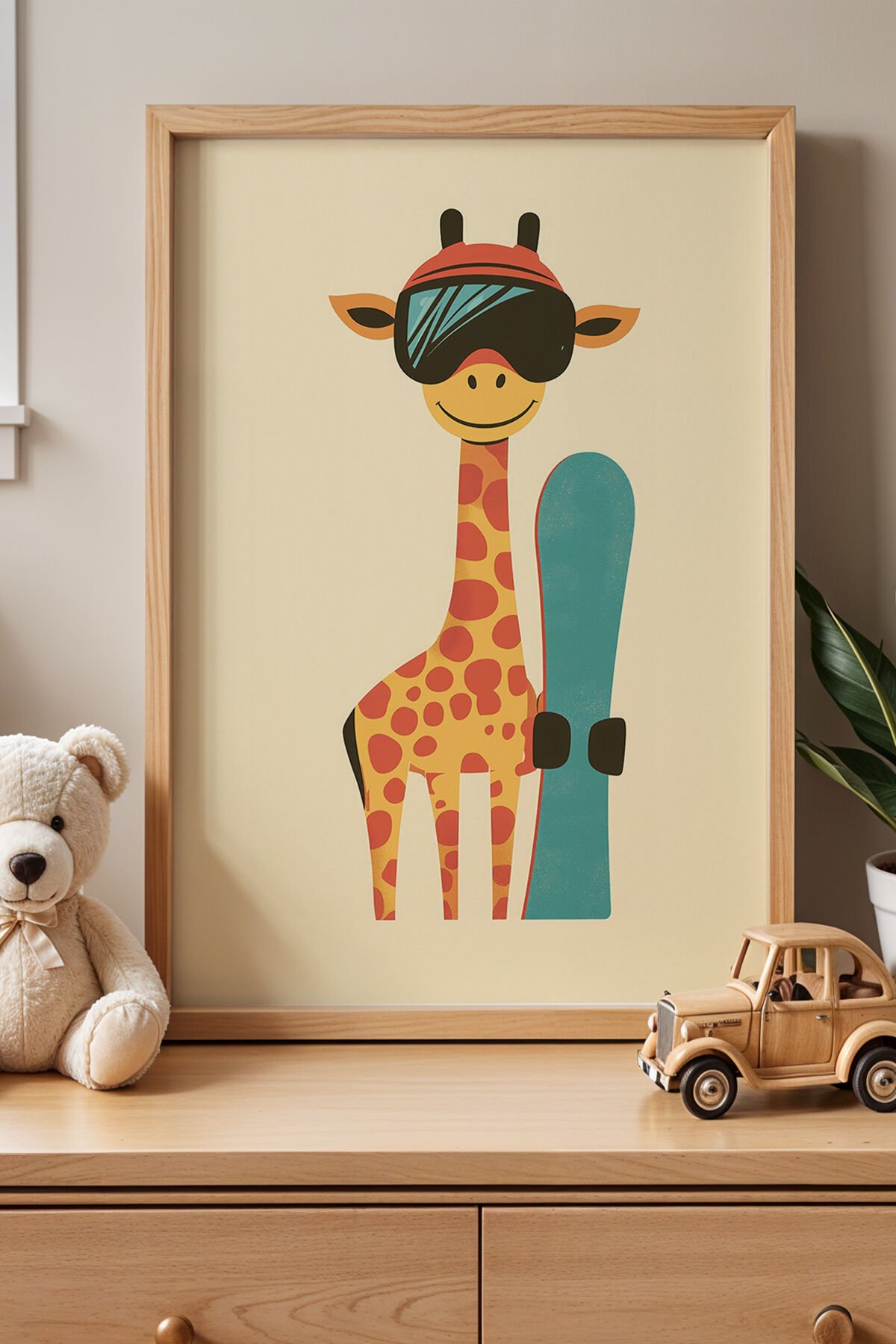 DOĞAL AHŞAP - Sevimli Zürafa Çocuk Odası Ve Bebek Odası Ahşap Çerçeveli Duvar Tablosu