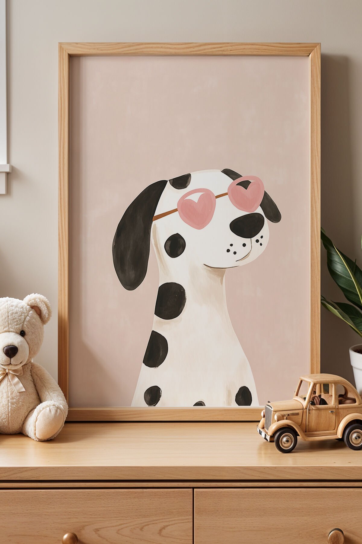 DOĞAL AHŞAP - Şirin Kalpli Gözlüklü Köpek Çocuk Odası Ahşap Çerçeveli Duvar Tablosu