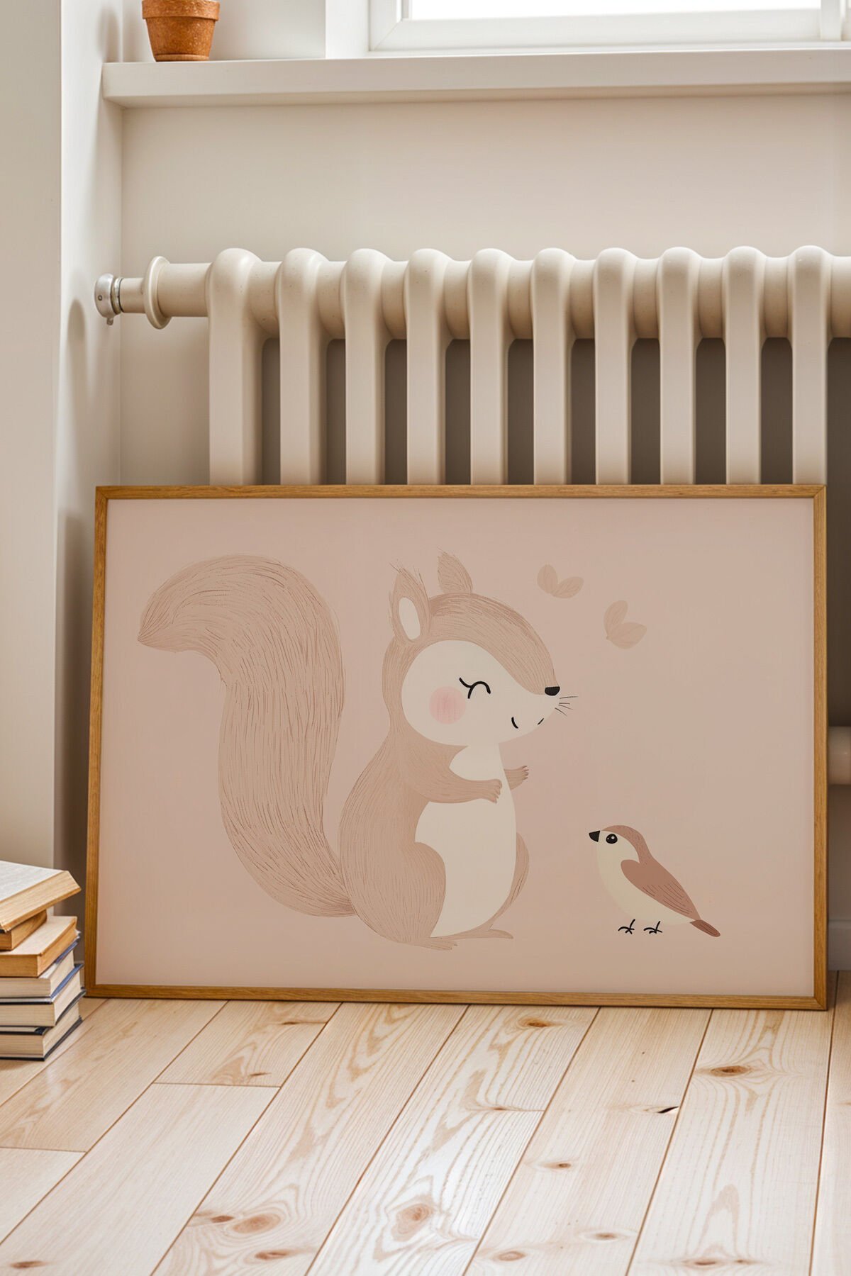 DOĞAL AHŞAP - Şirin Sincap ve Dostu - Doğal Ahşap Çerçeveli Çocuk ve Bebek Odası Tablosu