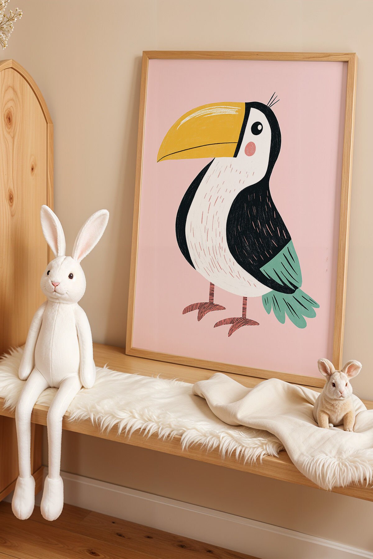 DOĞAL AHŞAP - Şirin Tukan Kuşu Çocuk Odası Ahşap Çerçeveli Duvar Tablosu