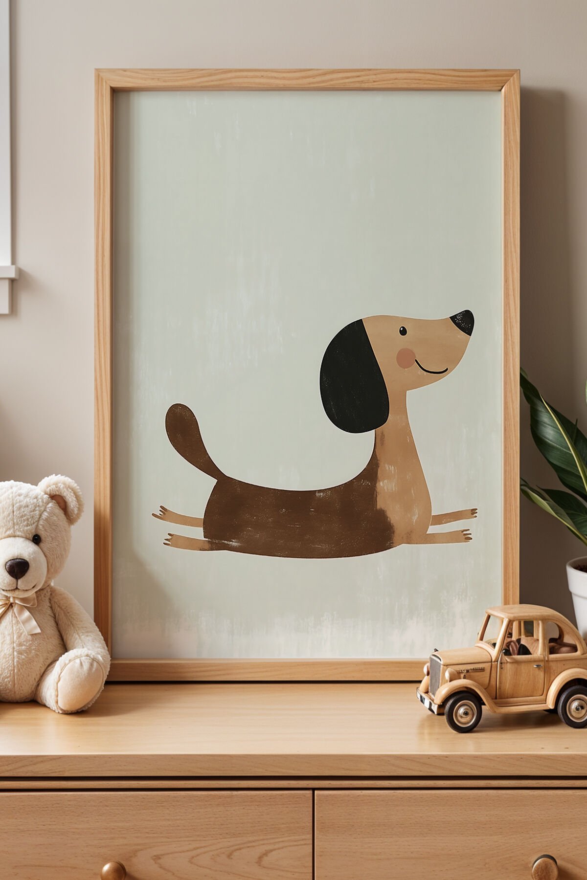 DOĞAL AHŞAP - Şirin Yatan Köpek Çocuk Odası Ahşap Çerçeveli Duvar Tablosu