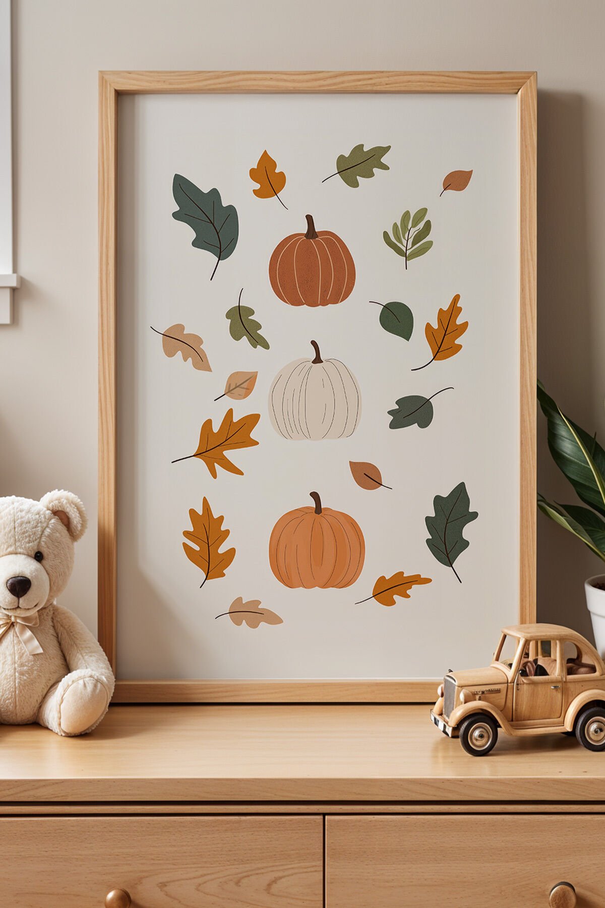 DOĞAL AHŞAP - Sonbahar Yaprakları – Doğal Ahşap Çerçeveli Çocuk Odası Tablosu