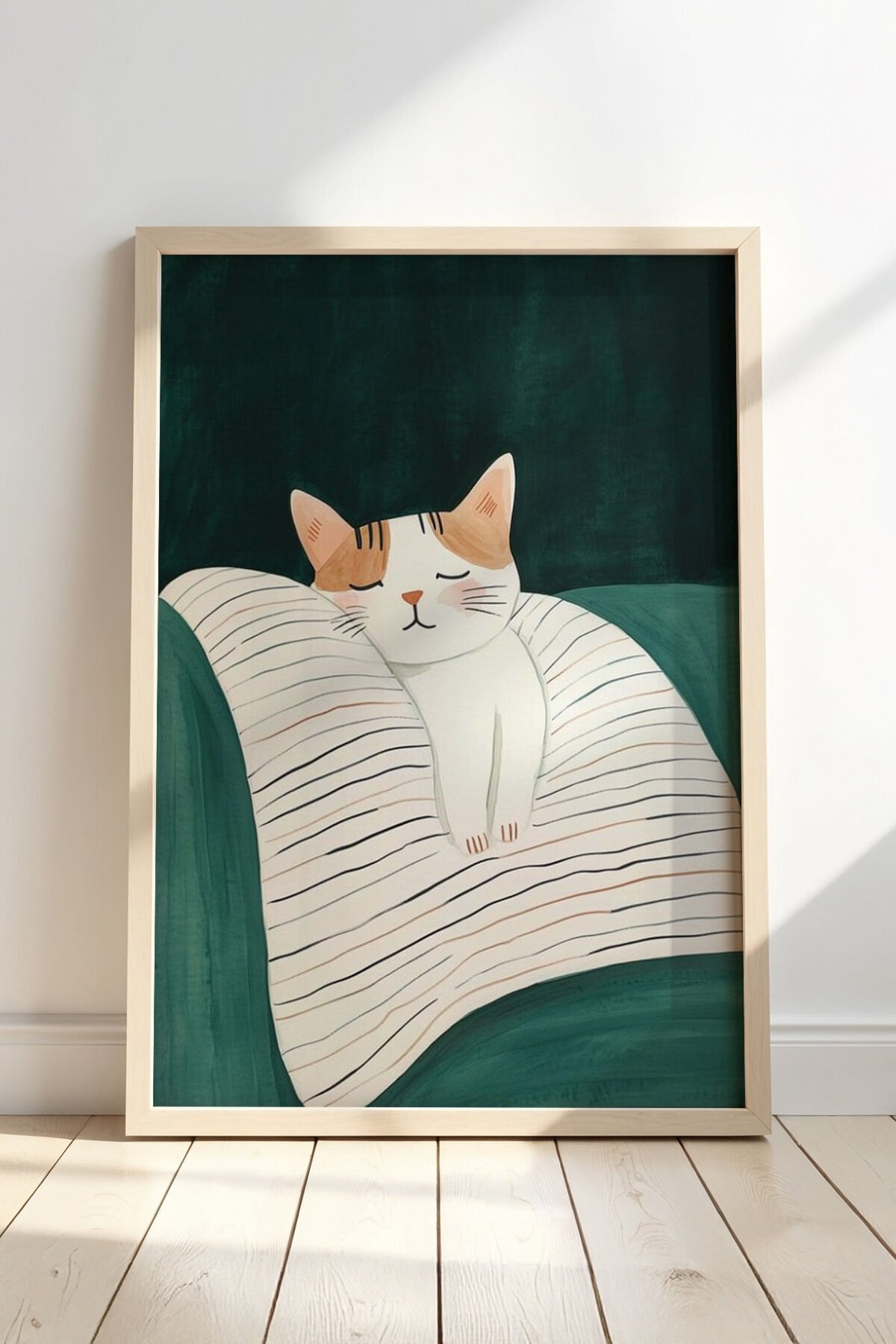 DOĞAL AHŞAP - Soyut Kedi Sanatı Ahşap Çerçeveli Duvar Kedi Tablosu