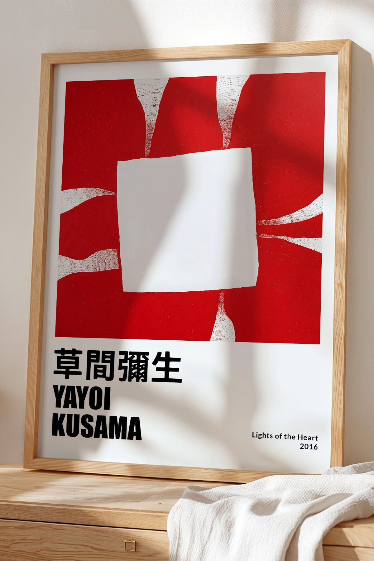 DOĞAL AHŞAP - Soyut Kırmızı & Beyaz Geometrik Japandi - Doğal Ahşap Çerçeveli Tablo