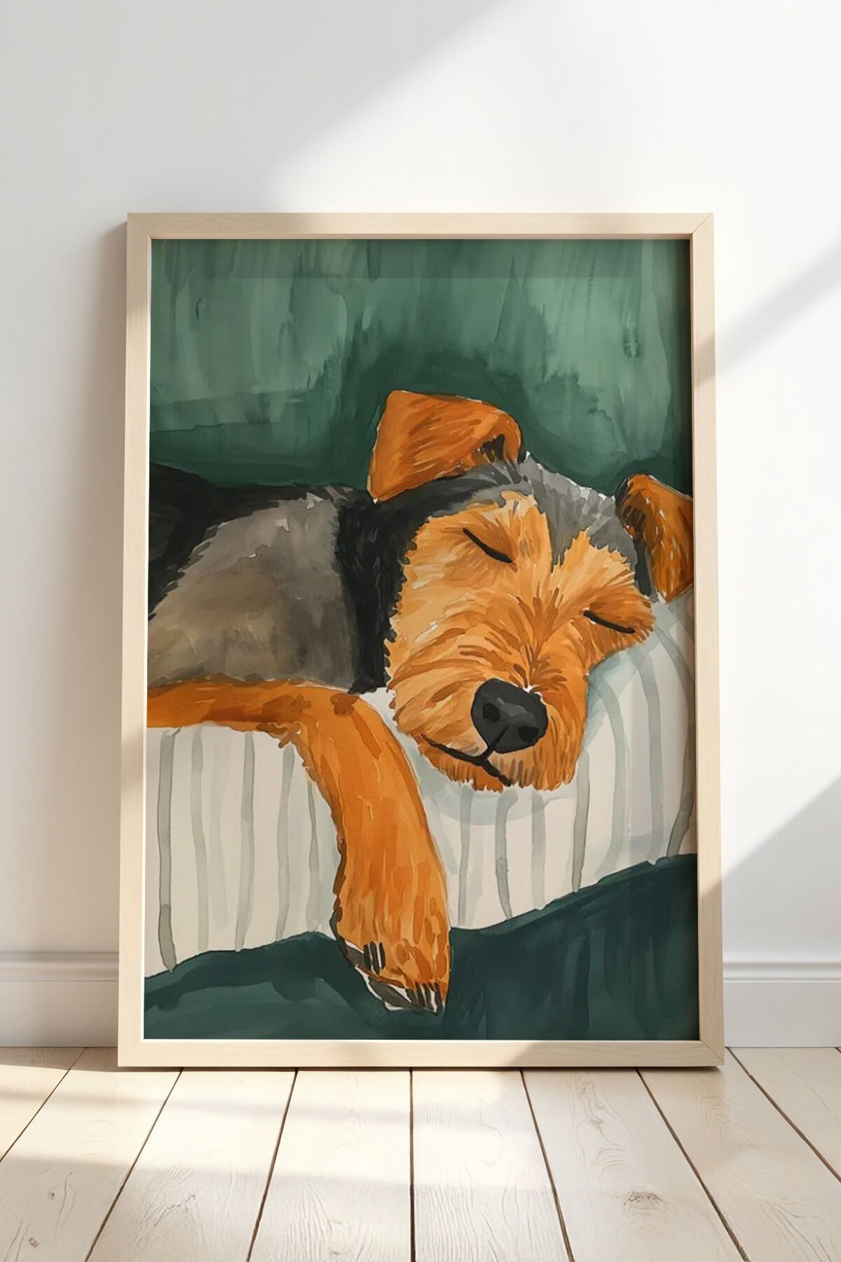DOĞAL AHŞAP - Soyut Köpek Sanat Baskısı Ahşap Çerçeveli Köpek Duvar Tablosu