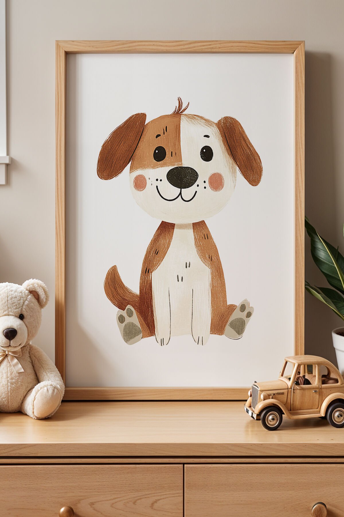 DOĞAL AHŞAP - Tatlı Kahverengi Köpek Çocuk Odası Ahşap Çerçeveli Duvar Tablosu