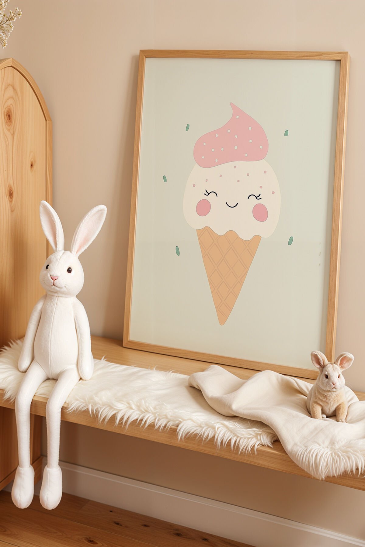 DOĞAL AHŞAP - Tatlı Kremalı Dondurma - Doğal Ahşap Çerçeveli Çocuk ve Bebek Odası Tablosu