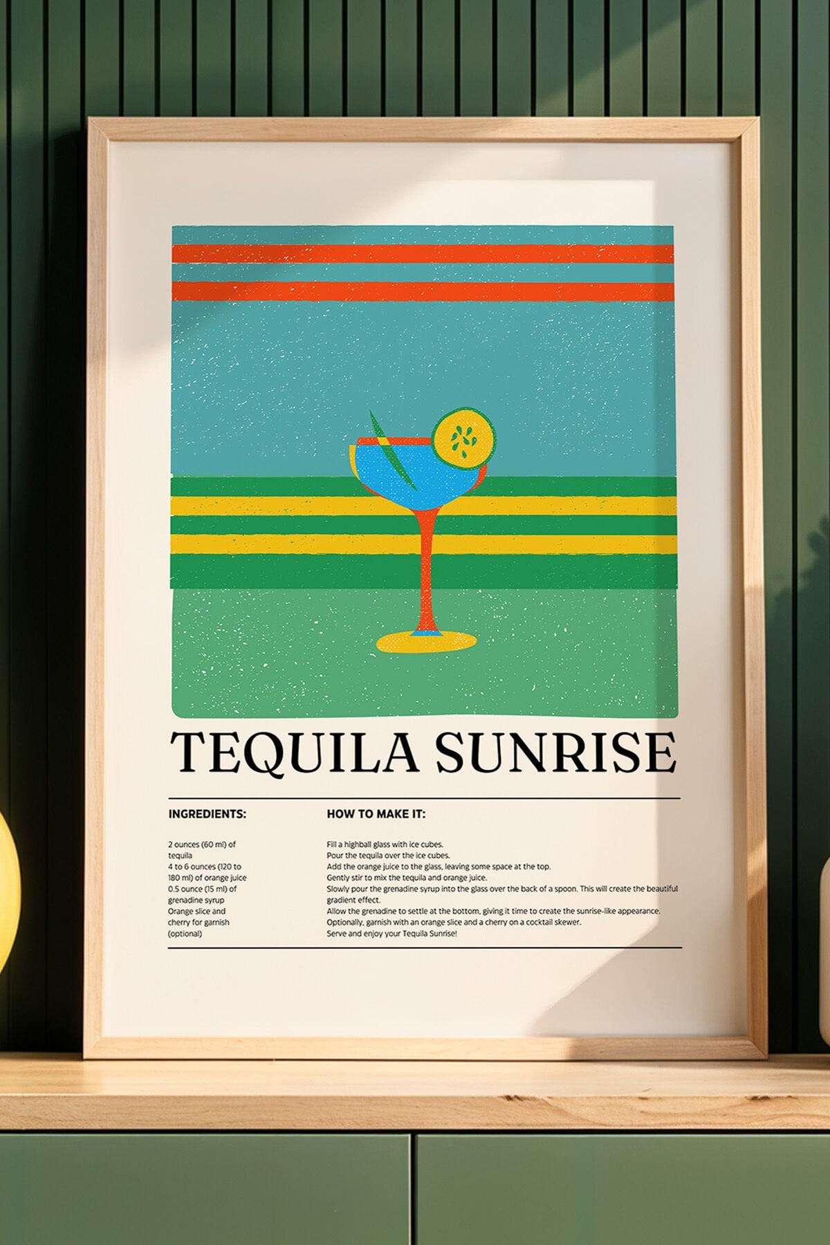 DOĞAL AHŞAP - Tequila Sunrise Kokteyl Tarifi Mutfak Ahşap Çerçeveli Duvar Tablosu