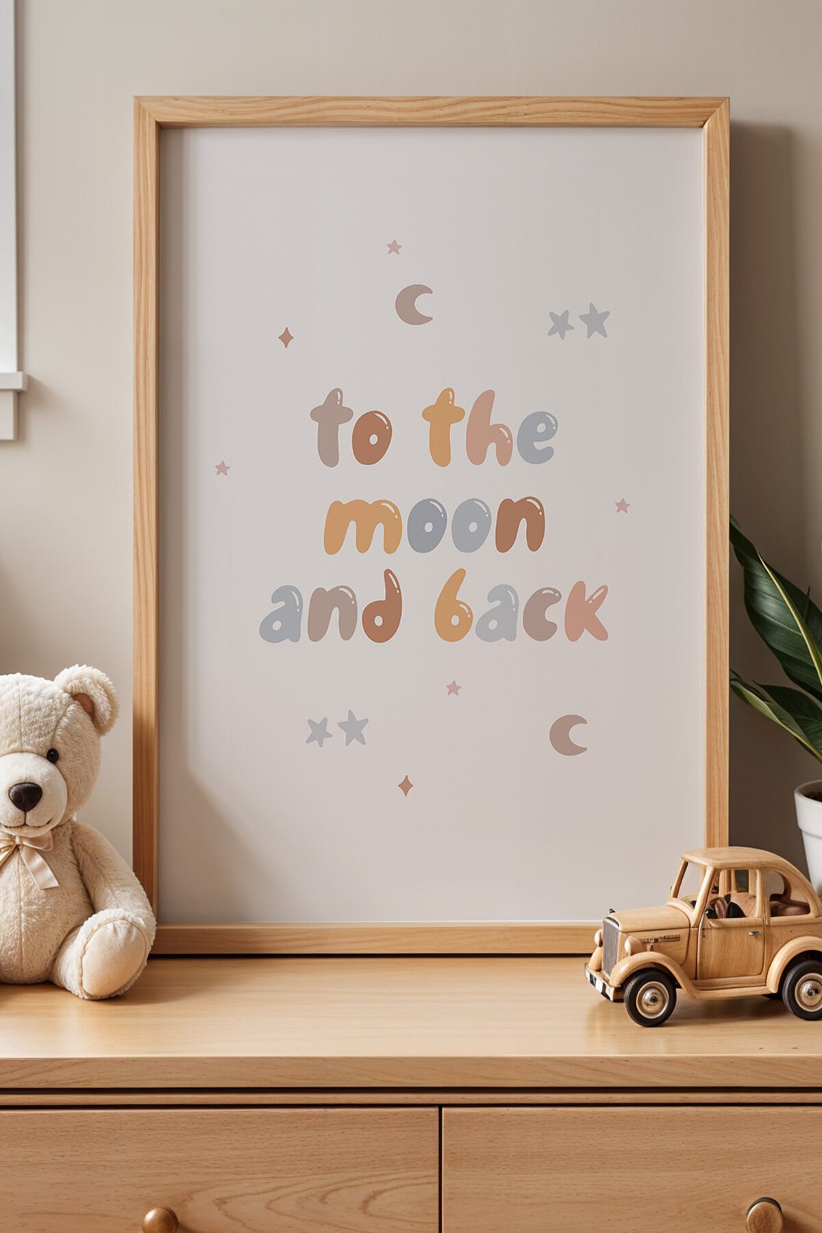 DOĞAL AHŞAP - ‘To The Moon and Back’ Ay Temalı - Doğal Ahşap Çerçeveli Çocuk ve Bebek Odası Tablosu