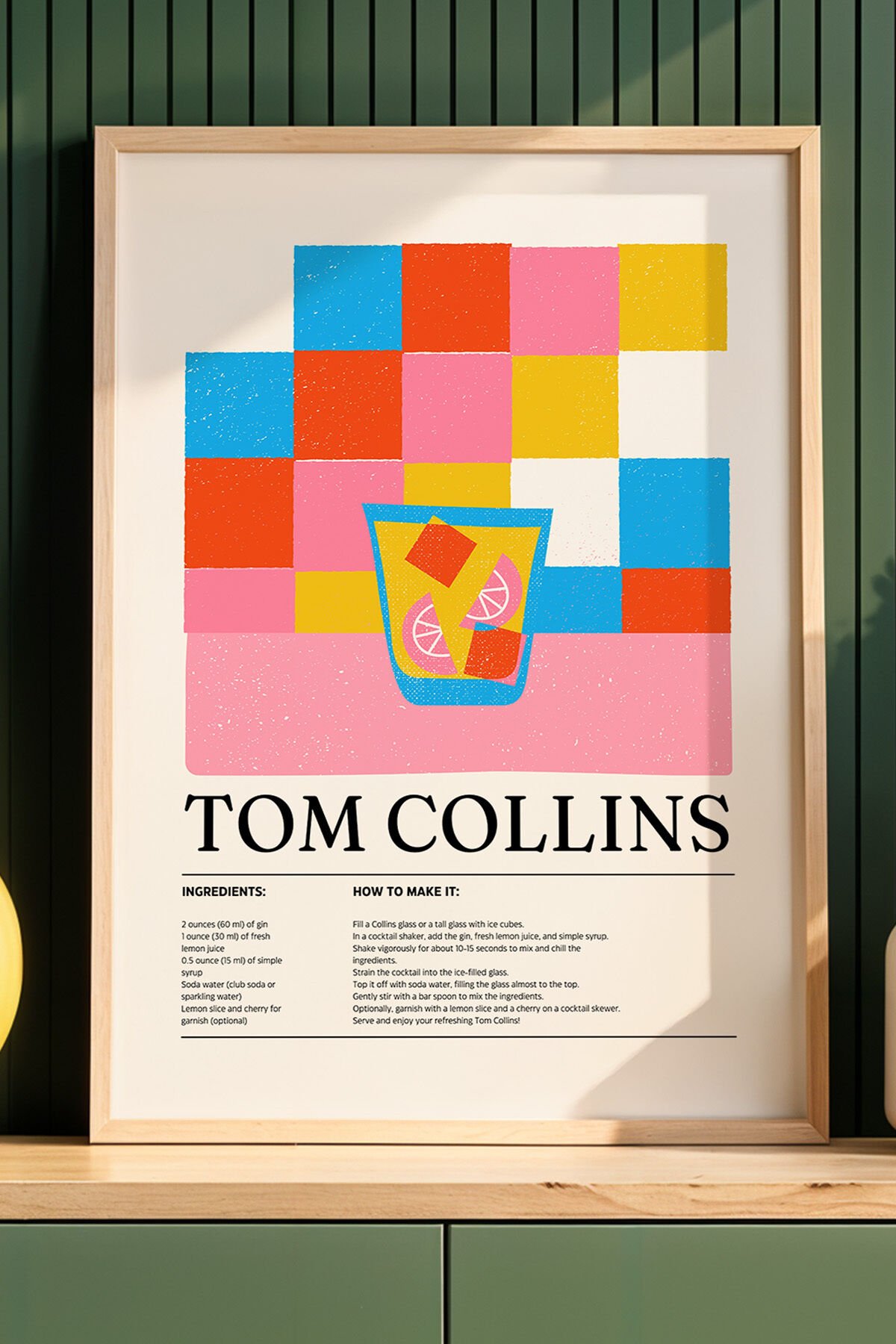 DOĞAL AHŞAP - Tom Collins Tarifi Mutfak Ahşap Çerçeveli Duvar Tablosu