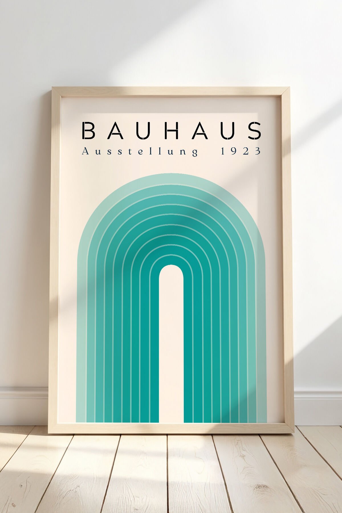 DOĞAL AHŞAP - Turkuaz Bauhaus Stili Minimalist Geometrik Sanat Abstract Boho Ahşap Çerçeveli Duvar Tablosu