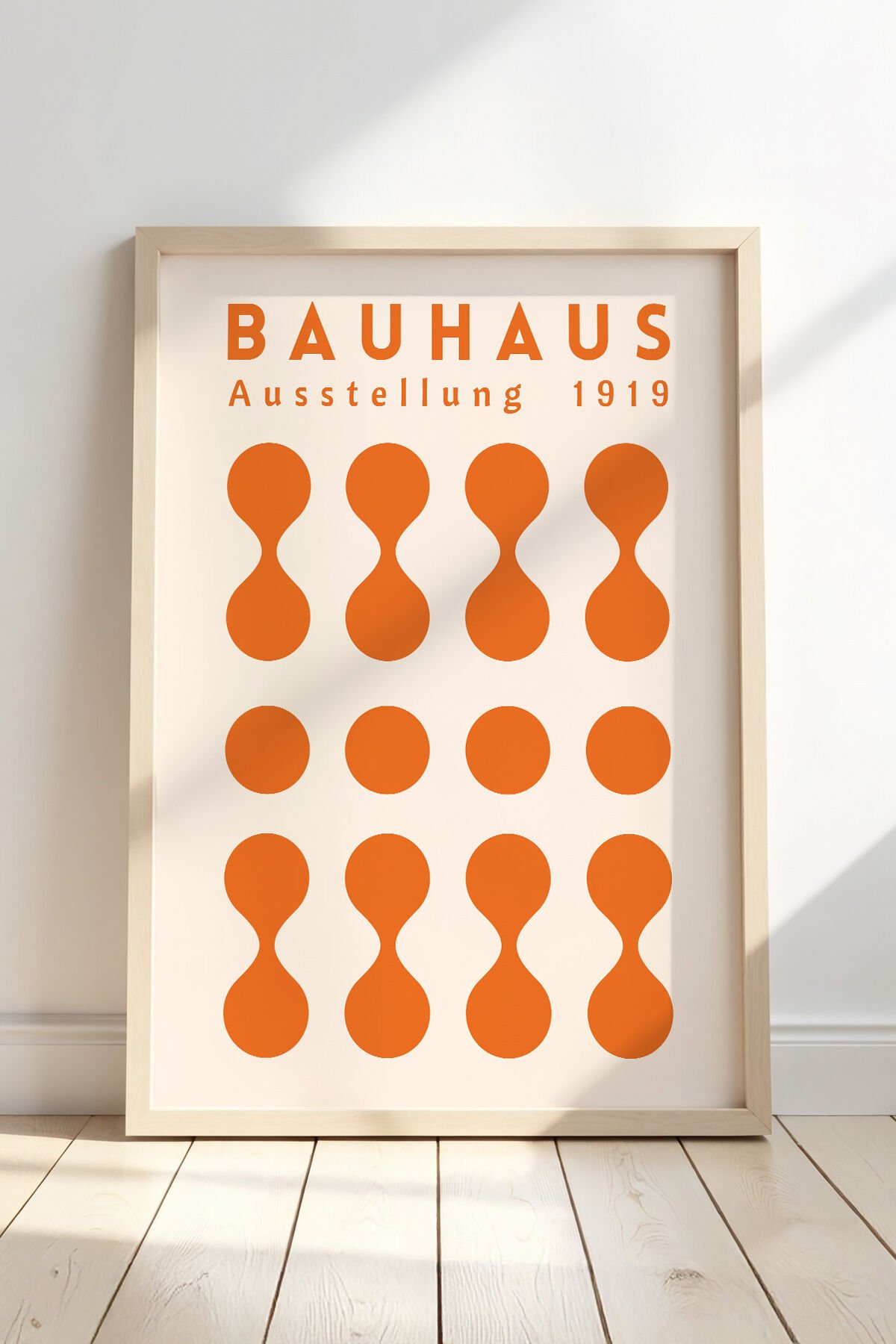 DOĞAL AHŞAP - Turuncu Bauhaus Stili Minimalist Terakota Vintage Geometrik Sanat Ahşap Çerçeveli Duvar Tablosu