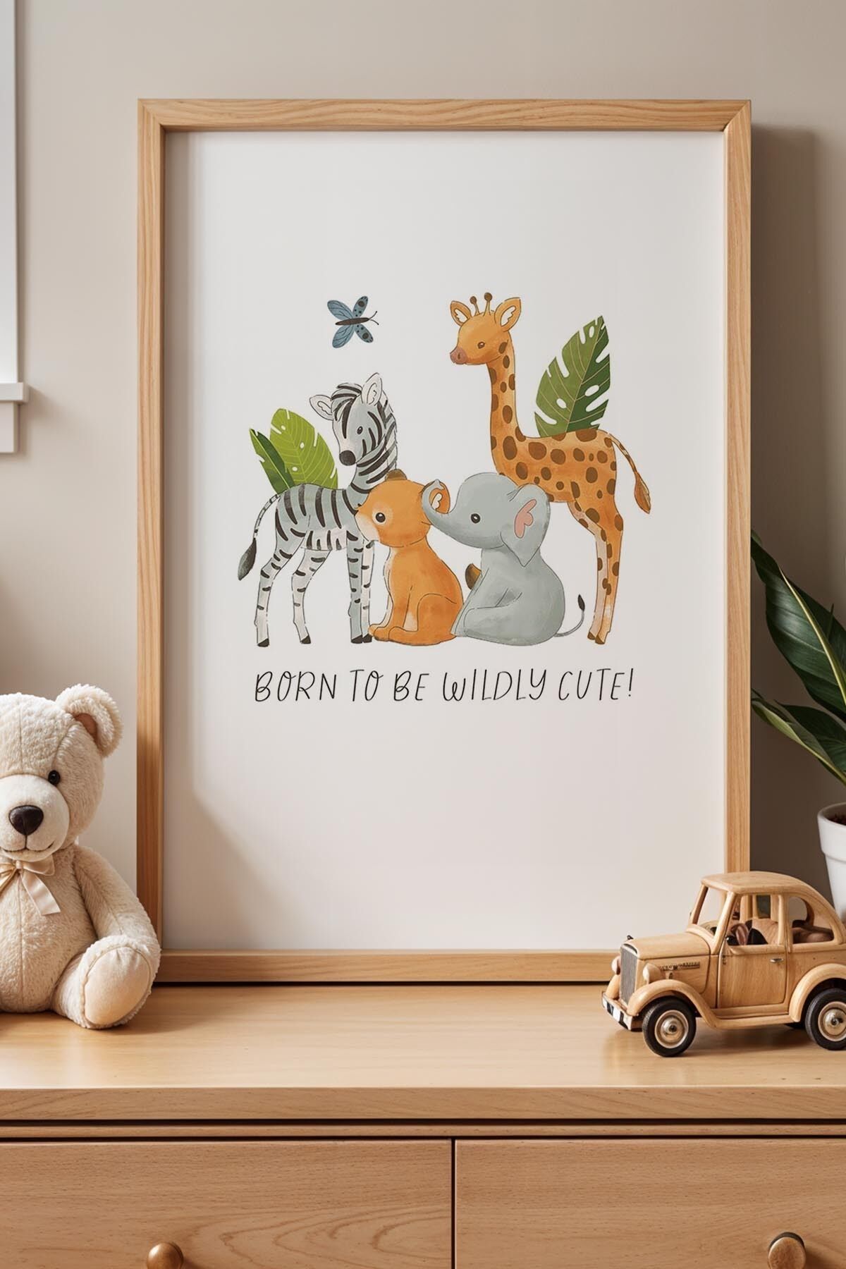 DOĞAL AHŞAP - Vahşi Doğa Sevimli Hayvanlar Çocuk Odası Ahşap Çerçeveli Duvar Tablosu