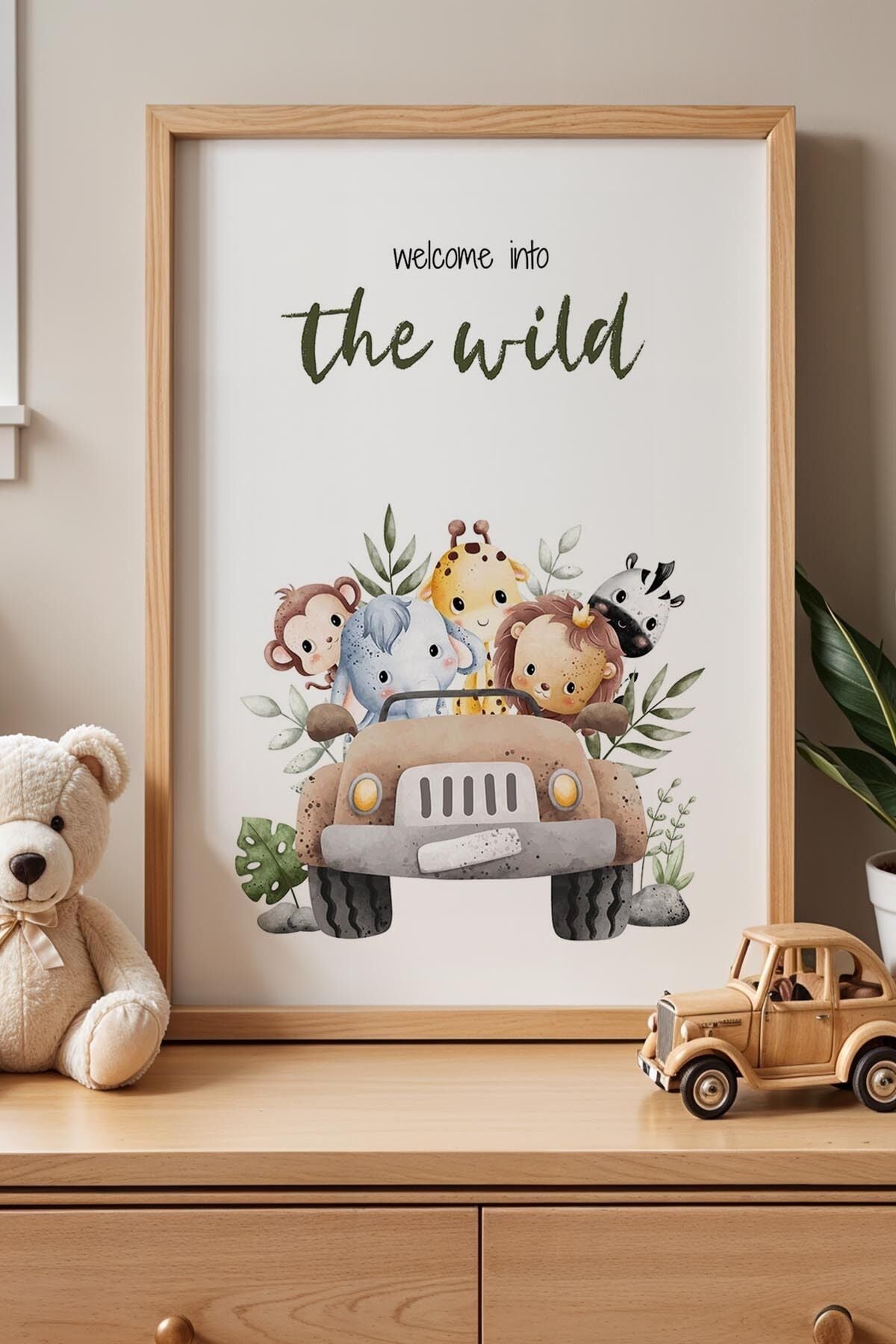 DOĞAL AHŞAP - Vahşi Doğaya Hoş Geldiniz Çocuk Odası Ahşap Çerçeveli Duvar Tablosu