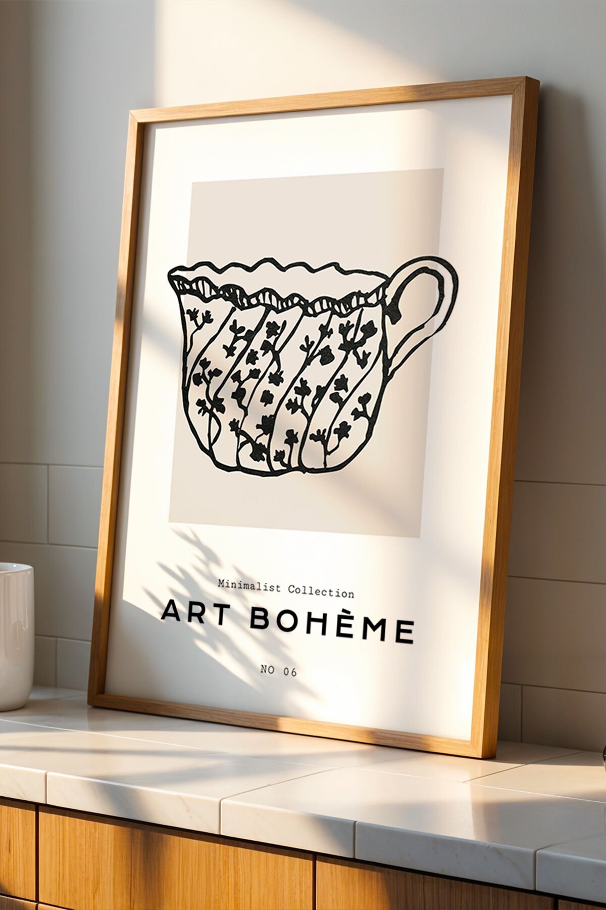 DOĞAL AHŞAP - Vintage Çay Fincanı Doğal Ahşap Çerçeveli Mutfak Duvar Tablosu