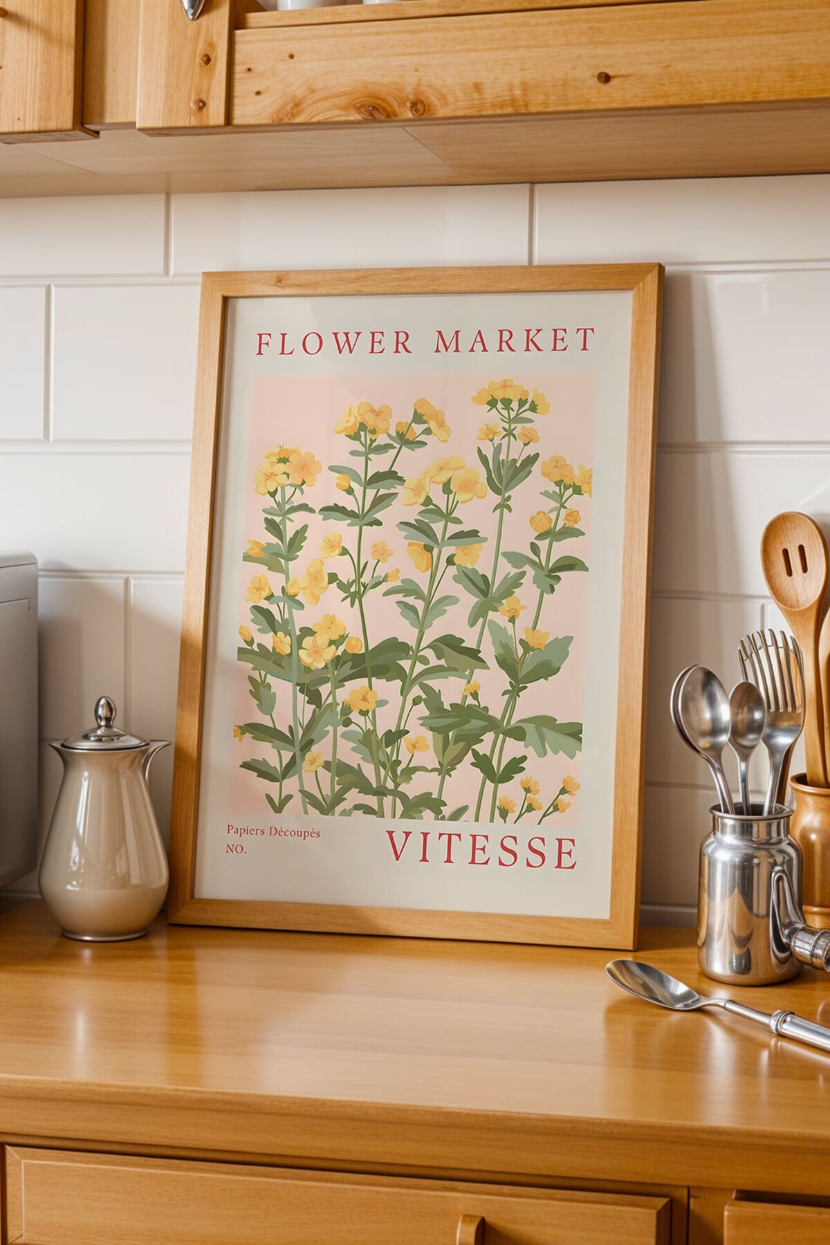 DOĞAL AHŞAP - Vitesse – Doğal Ahşap Çerçeveli Flower Market Vitesse Doğal Sarı Çiçek Tablo